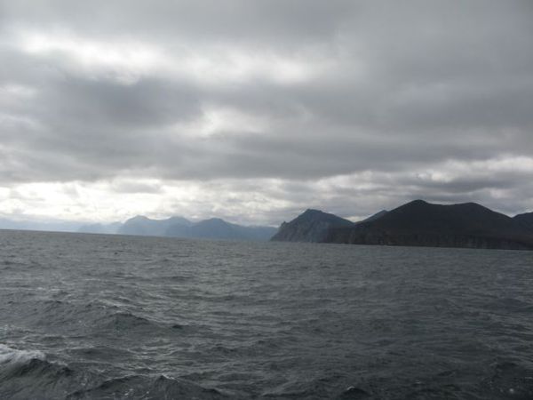 Капитан принял решение идти дальше на другое место. Идем вдоль сурового камчатского берега. Сопки. Непролазная глушь.