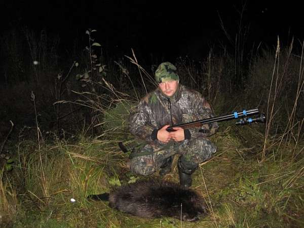 Не знаю почему, но самая любимая моя охота - это охота на бобров! Что то есть для меня в высиживании по ночам около маленьких речек, в ожидании этого замечательного зверя. Поэтому каждый год я обязательно беру пару лицензий и еду в заветные места, или ищу новые, еще не изведанные! Этот год тоже не стал исключением. И давно запланированная поездка наконец то удалась! Первая ночь принесла волну адреналина и выстрел по тому месту, где секунду назад был бобер! Не отчаявшись и вооружившись терпением, на вторую ночь была предпринята еще одна попытка добыть хитреца! И около 21.30 по московскому времени, на противоположном берегу речки, после характерного плеска был высвечен бобришка! Два выстрела картечью 6,2 не оставили ему шансов! И ликование от добытого трофея в очередной раз наполнило душу охотника!