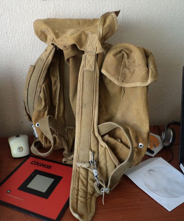у меня есть такой... на один день в самый раз... правда под него ремень нужен типа армейского (я офицерский пользую). Объём то только на поесть мне и собаке... так для прогулок по лесу, ели с ночёвкой ,то только осенью, то бишь у костра без спальника под открытым небом.если устроит - подарю. Настоящий, с армейки притащил в 90х.