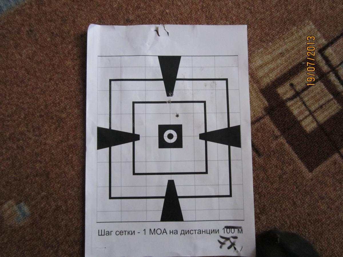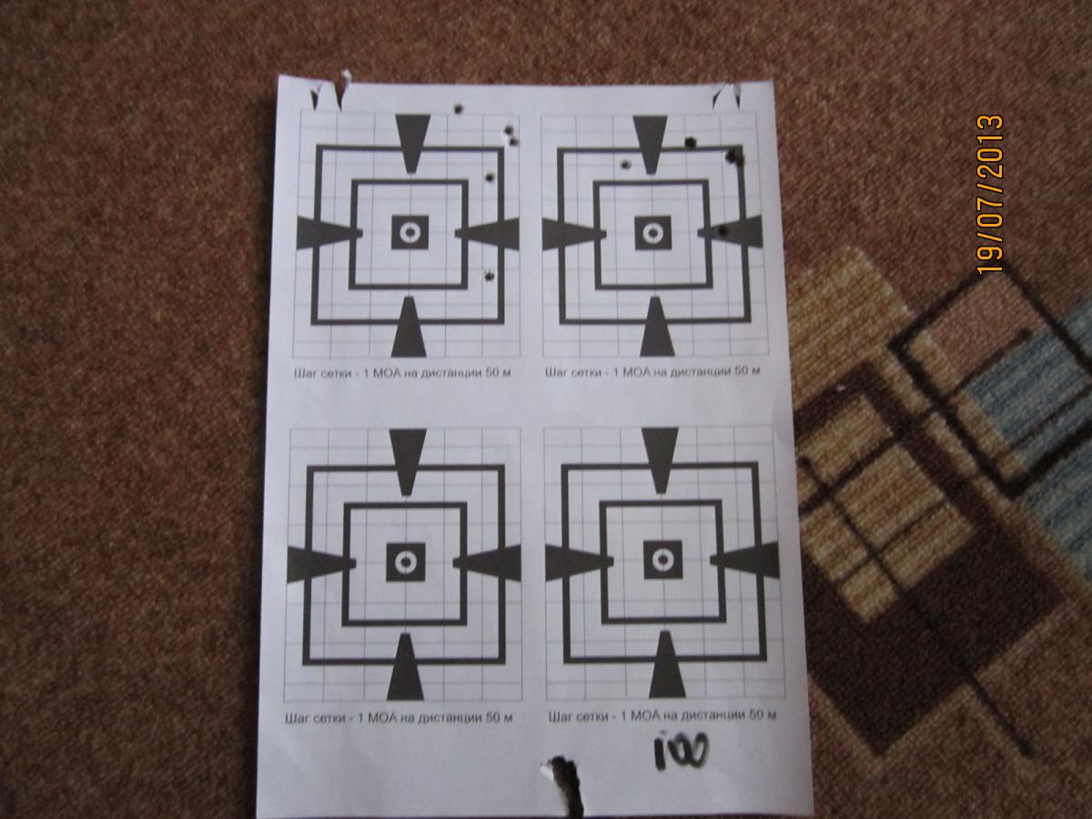 На 100 метров попробовал по методу ганзы. Две группы по 5 в мишени на одном листе. Стрелял по двум верхним.