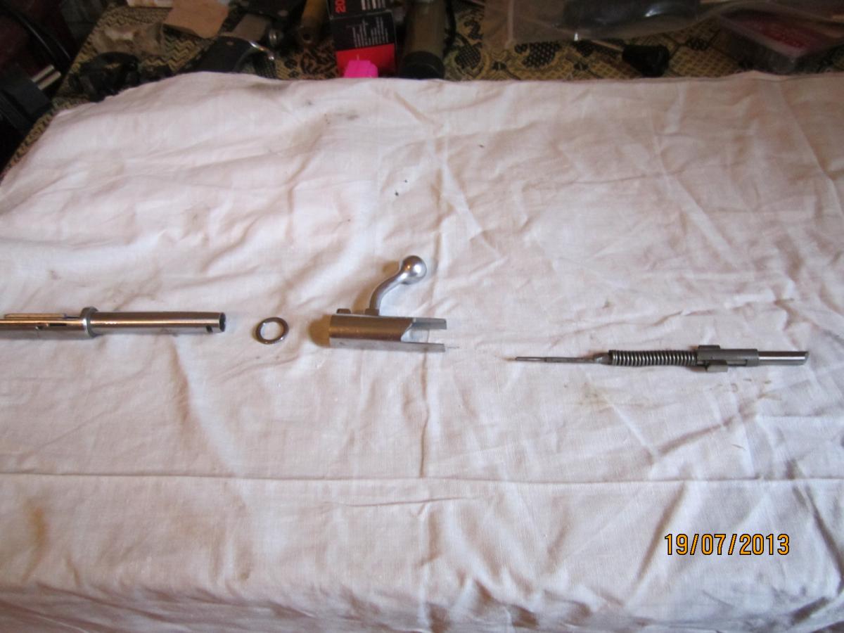 Вынимаем ударник в сборе, рукоятку и шайбу.