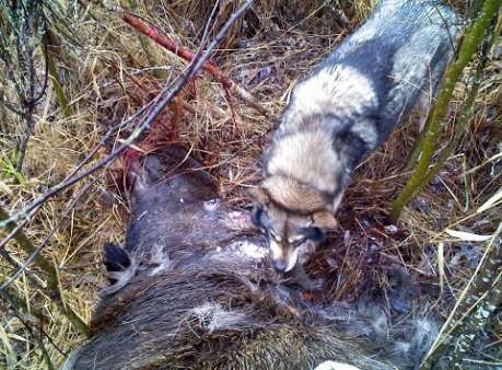 Собрались, выехали, обсудили, определились. Номера выставились из машин по дороге. Загонщики начали загон. Спустя 15 минут в загоне выстрел, за ним еще один. По рации слышу: "Лось! Уходил. Не попал. Далеко..." , "Собака пошла, пойду гляну..." Спустя пару минут: "А нее!!! Взял!" Загон закончен, все собираемся к месту стрела. Добыт бык, уже без рогов, два попадания по грудине, прошел метров 200, чем и взволновал стрелка. Дружная компания берется за дело... Выносить, правда, было далековато