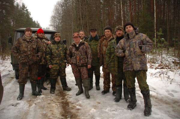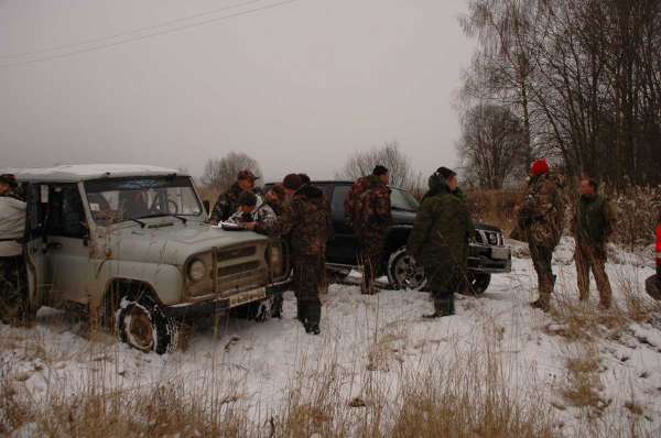К сожалению инициатор собравший команды поехать с нами не смог, поэтому на место охоты, в Тверскую область, нас выехало 11 человек и еще 2 охотника присоединились на месте.