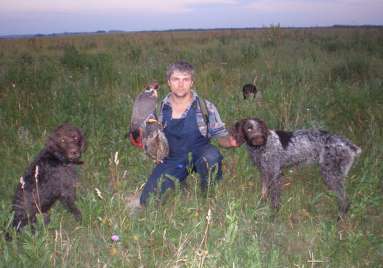 Дратхары, на самом деле, очень суровые и даже злобные собаки. Но это относится к посторонним людям или животным.К своим домашним же, к которым относятся и сокол и даже кот, драты проявляют очень нежные и трепетные чуства. Прибавьте к этому выносливость ,уравновешенность,хорошее чутье.! Соколиной охотой начал заниматься тридцать лет тому назад ,тринадцать из них мне в этом помогает дратхар по имени РЕМ, четыре года как к нам присоединился КАРТЭС .И, заметьте, оба кобели .!Благодаря им, мои соколы, одиннадцатилетний гибрид ДЕМОН (в этом году разбился на охоте)и девяти летняя сапсанка БАГИРА, заловили сотни тетеревов,куропаток,коростелей.... Со мной согласен и известный сокольник Виктор Федоров, такой же заводчик дратхаров, который и подарил мне первого щенка этой породы, за что я ему очень благодарен.