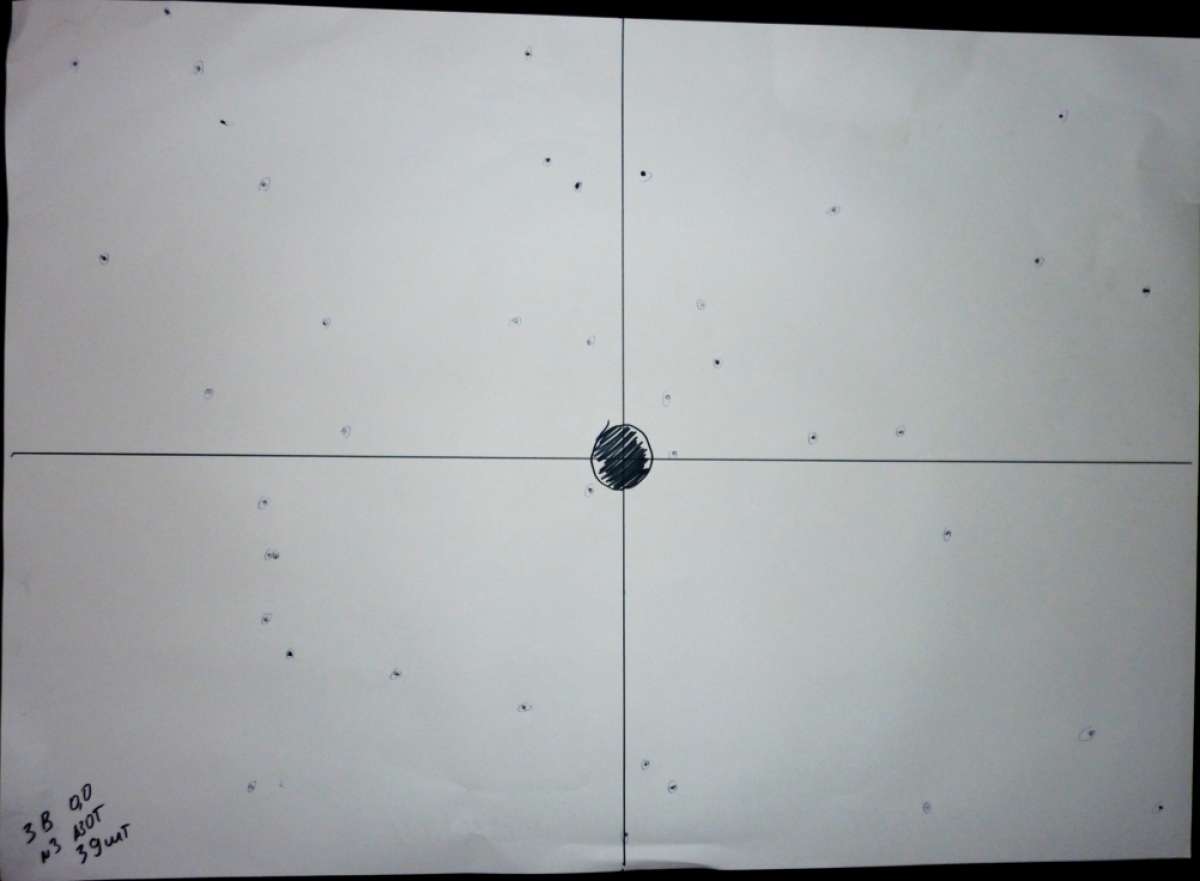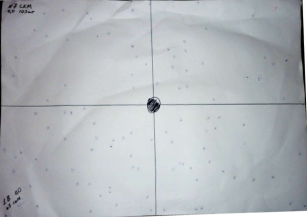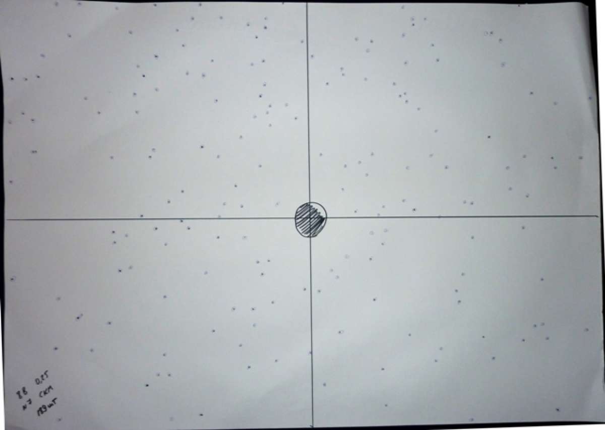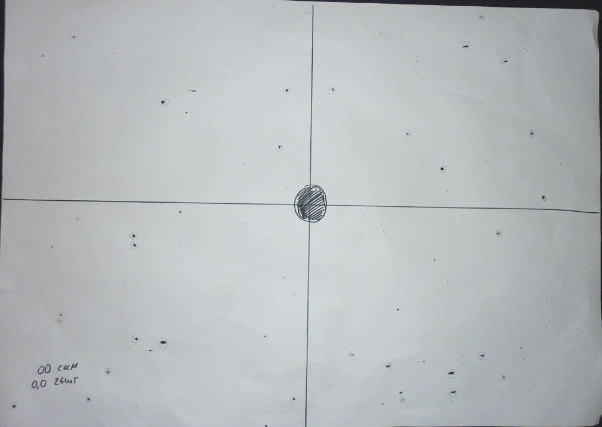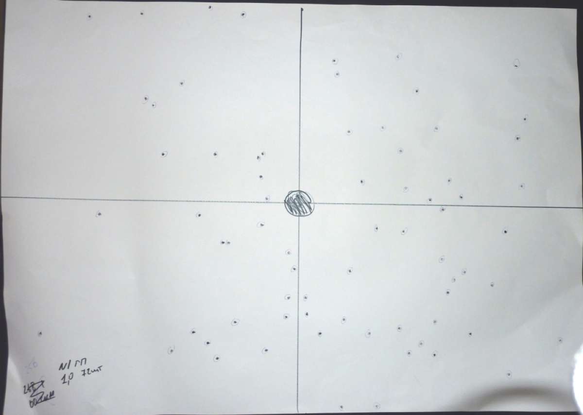 У Карена, к сожалению, неправильно наложена сама 100-дольная мишень на листы. Центр осыпи не нащупан. Наверное, Карен, Вы сначала мишень нарисовали, а потом стреляли по ней?