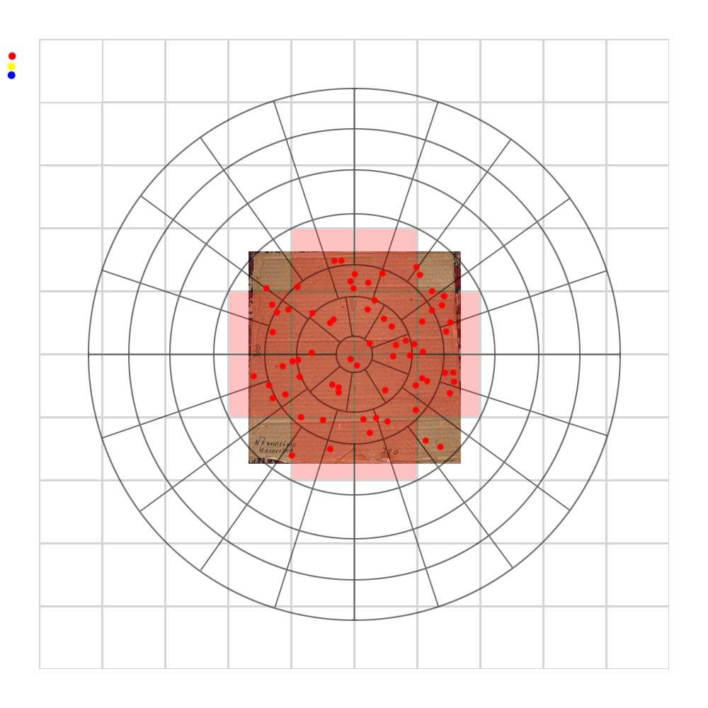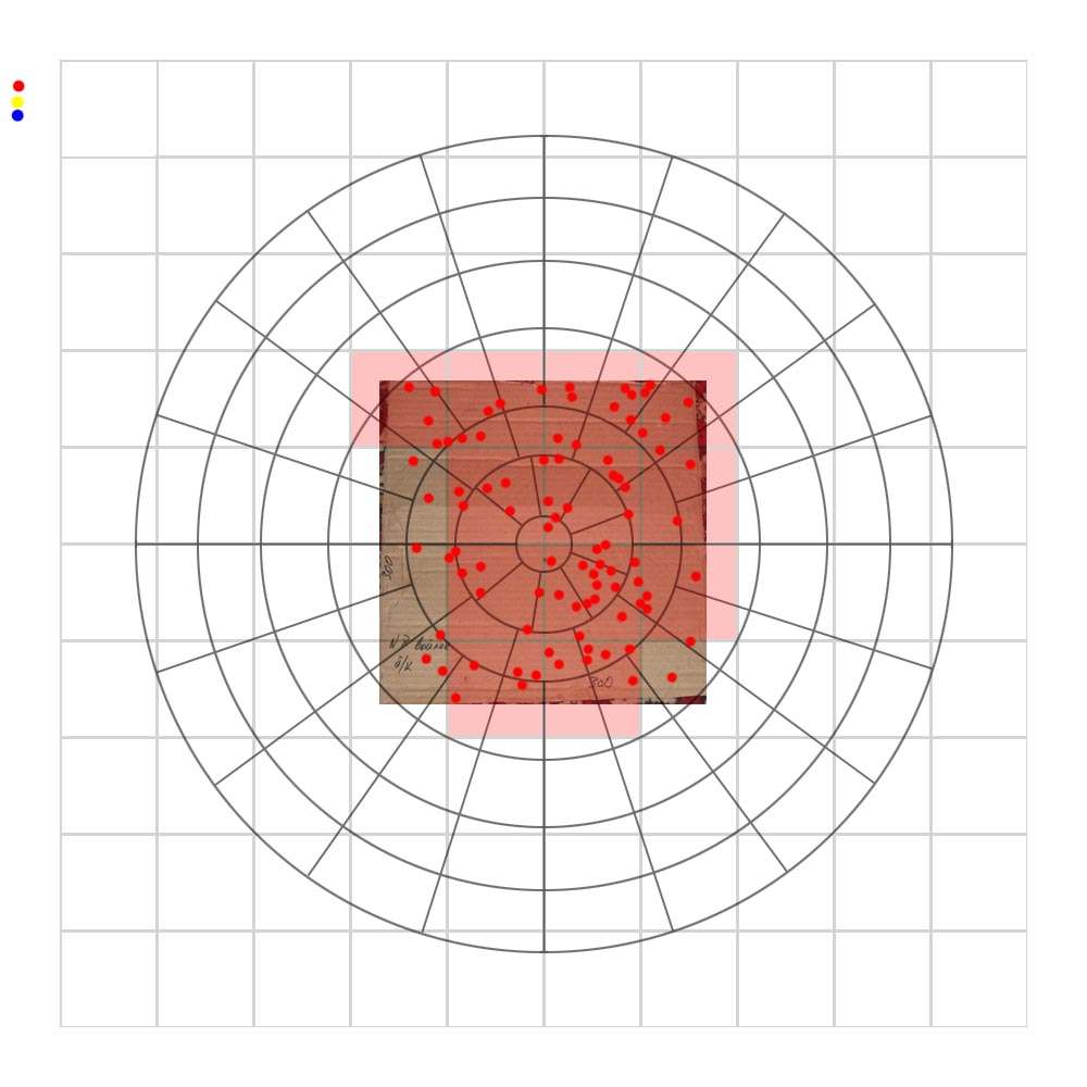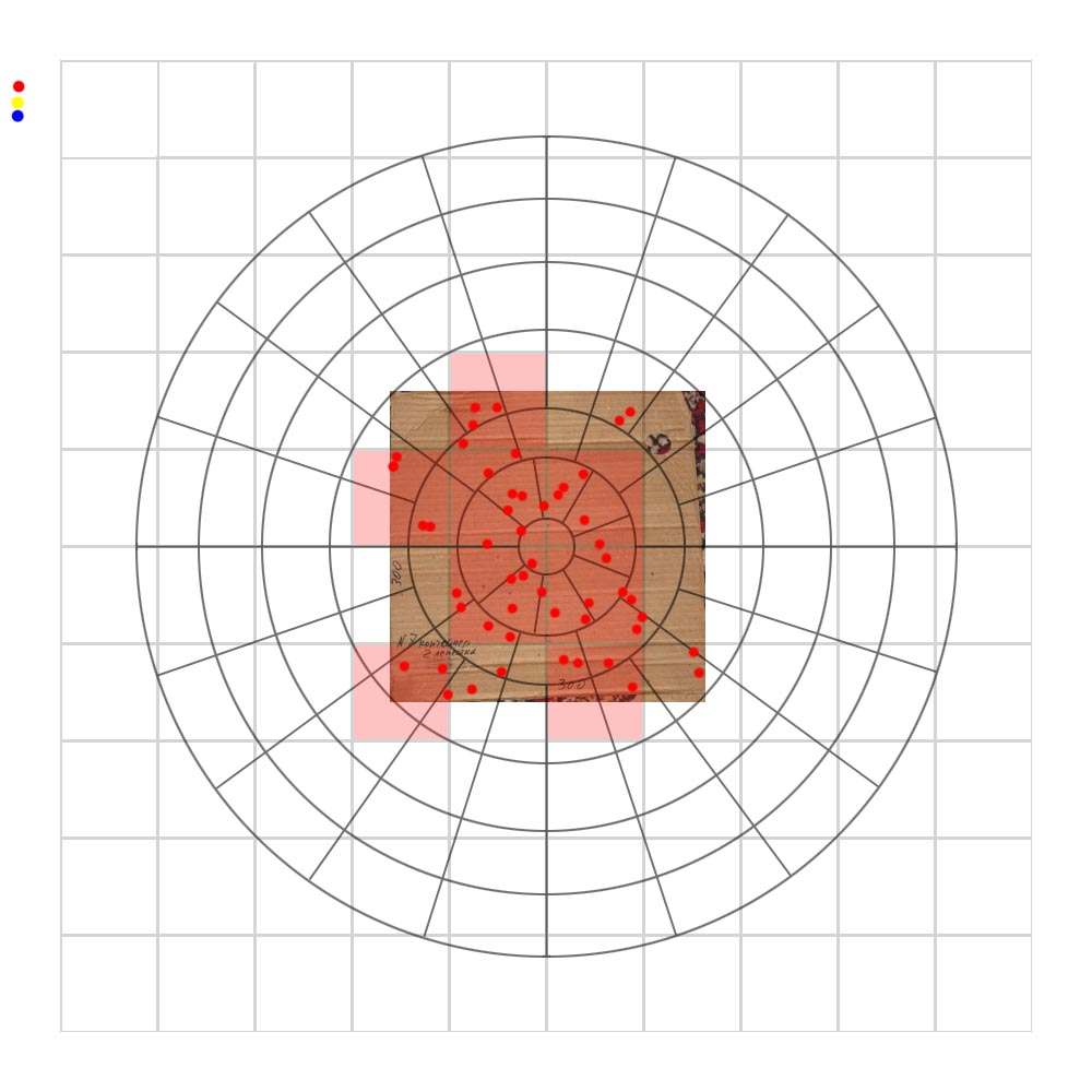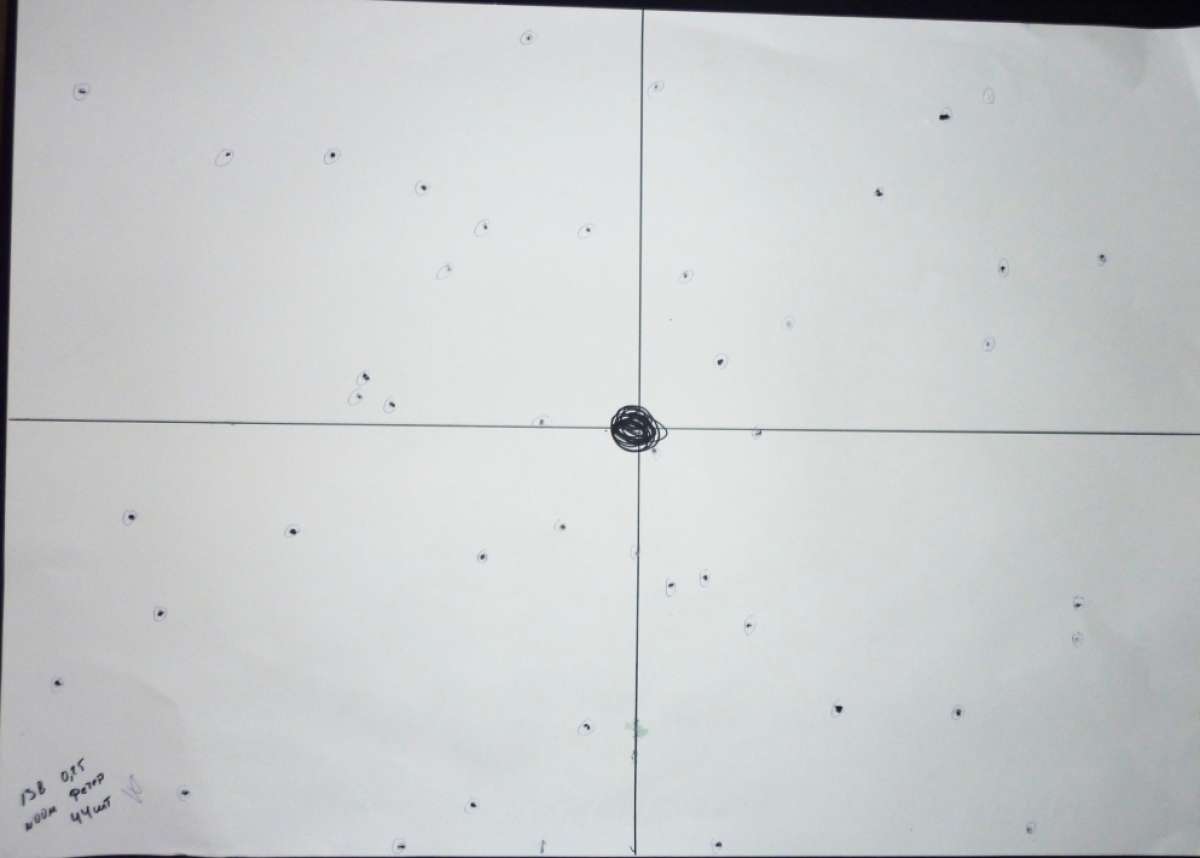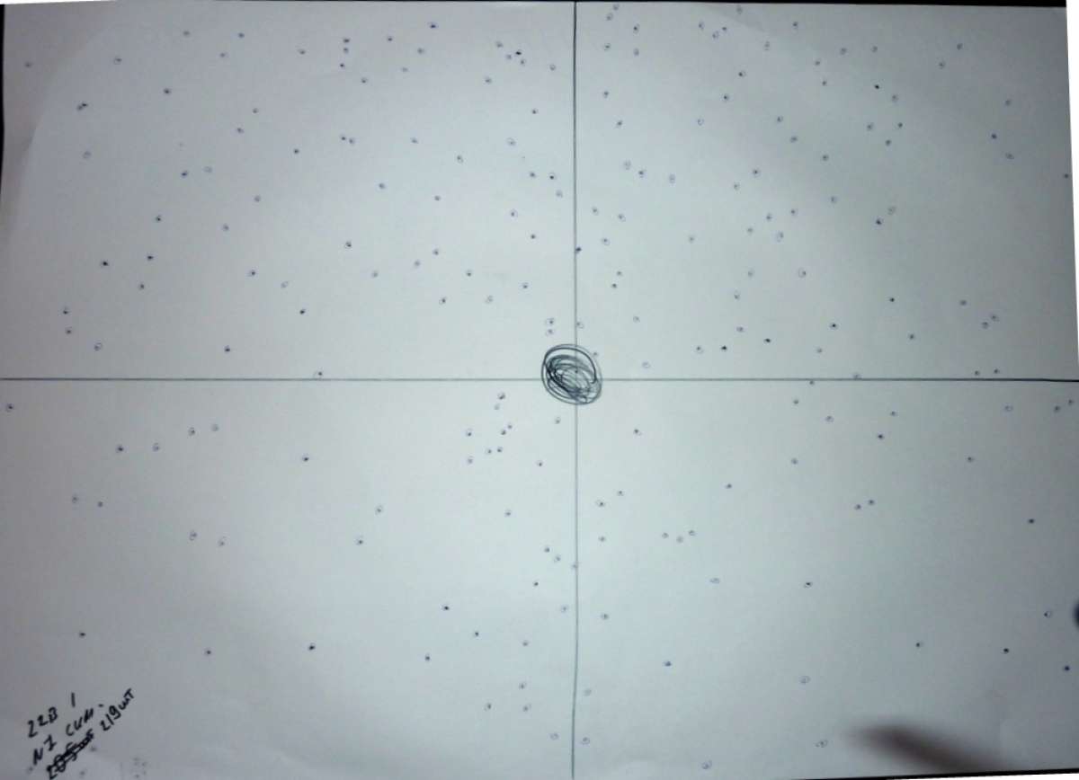 У Карена, к сожалению, неправильно наложена сама 100-дольная мишень на листы. Центр осыпи не нащупан. Наверное, Карен, Вы сначала мишень нарисовали, а потом стреляли по ней?