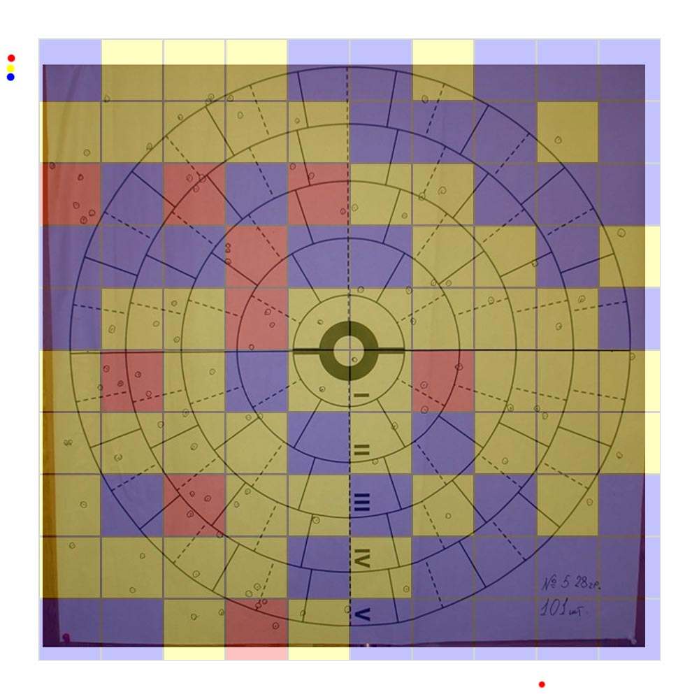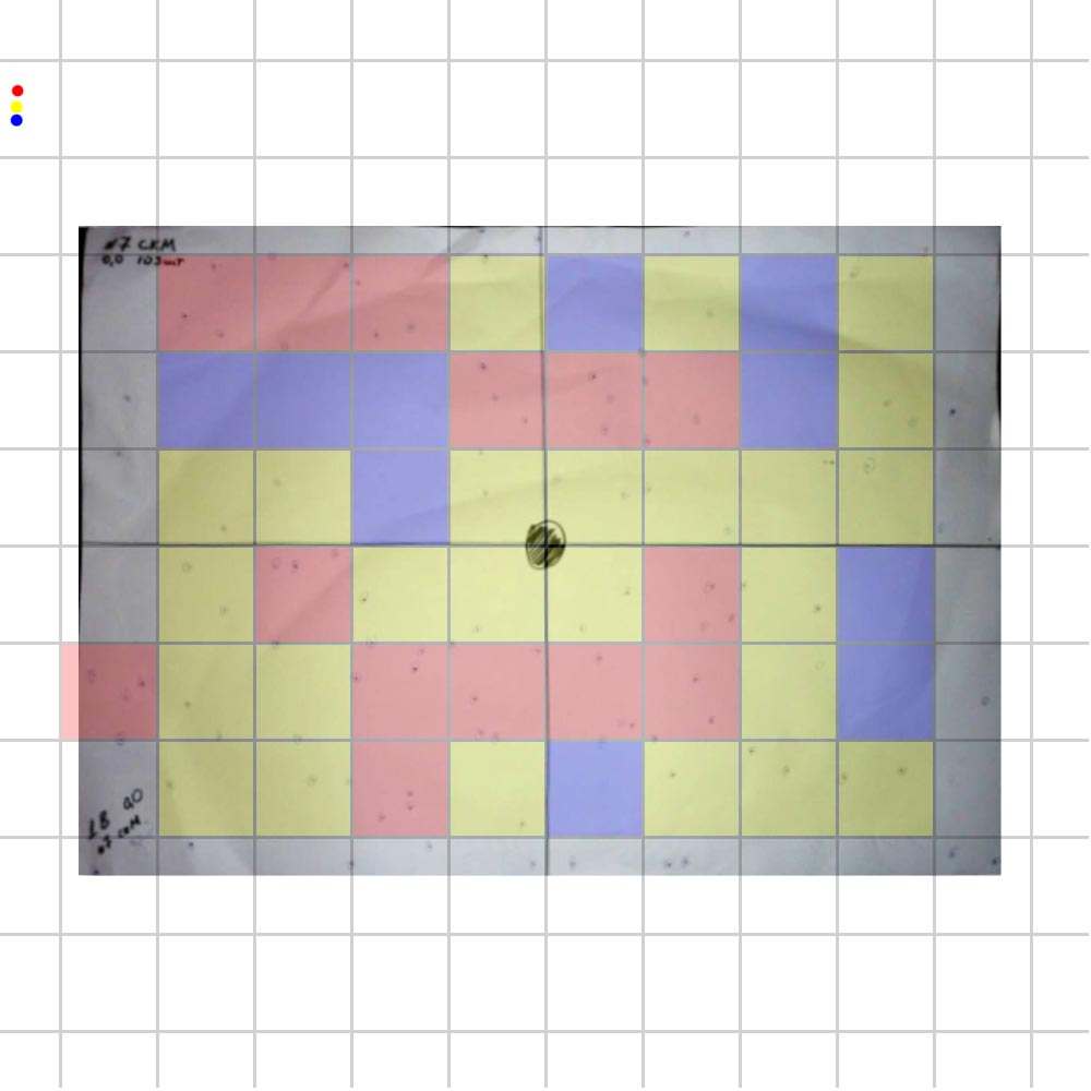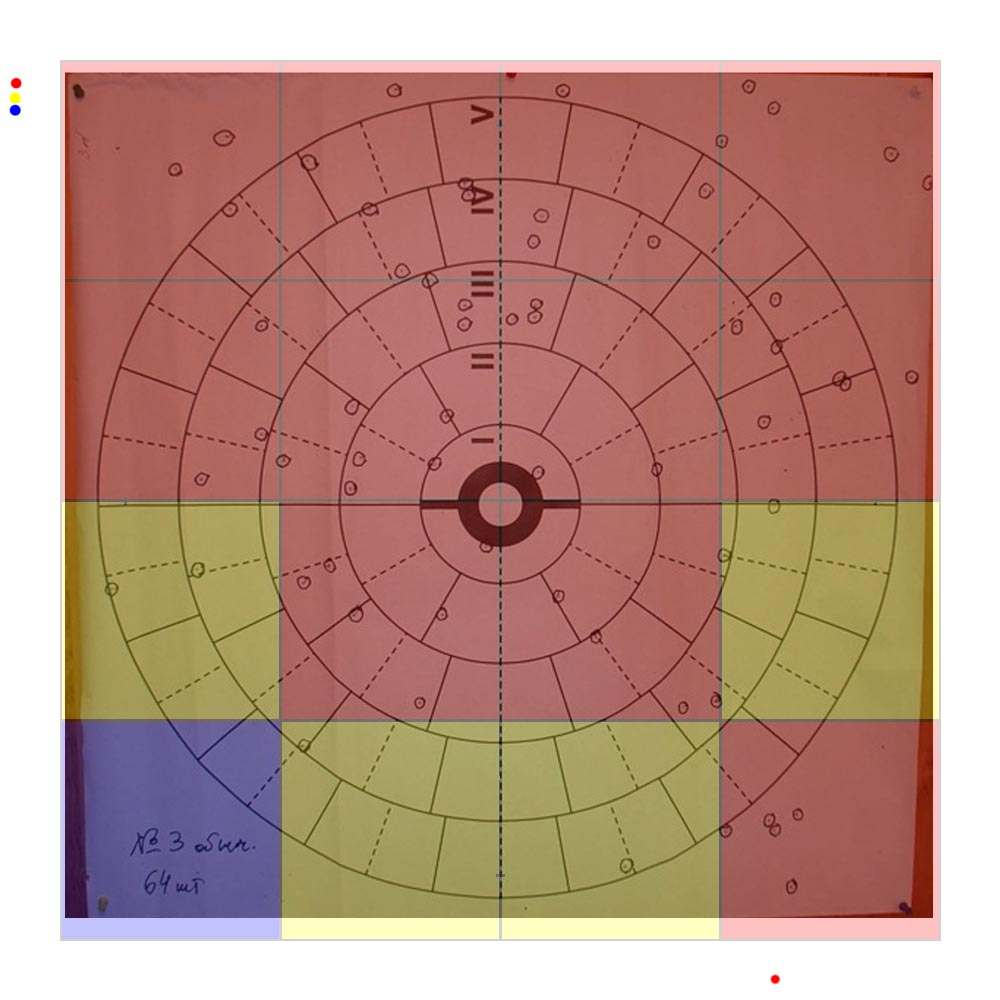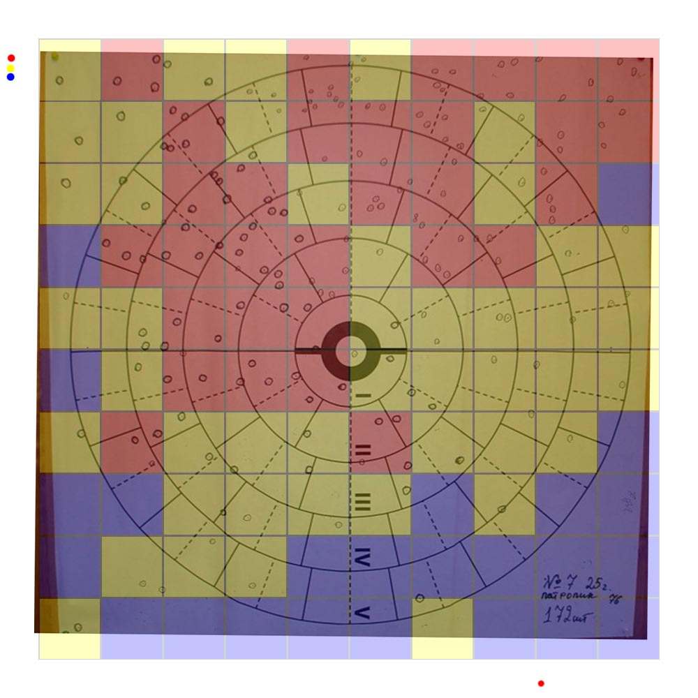 вобщем пока на фотки Карена наложил мишень Ивашенцова. мобыть чета Виктор найдет как считать.Сто дольная мишень, принятая в большинстве европейских стран для исследования дробовой осыпи, привязанная к заранее установленной дистанции, размеру мишени, определенным номерам дроби для охотничьей практики является неприемлемой, поскольку не дает прямого ответа на вопрос: "Какова величина убойного круга и какова плотность дроби при стрельбе по данной дичи, данной дробью, на данном от нее расстоянии?". Этот вопрос блестяще решил наш соотечественник Александр Петрович Ивашенцов... Очень обидно, что ни в свое время, ни в дальнейшем эта мишень не была оценена охотничьим сообществом.