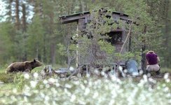 old uhu, Спасибо за рассказ ! Последний раз , у меня почти над головой медведь тряс черёмуху. Я на лодке сплавлялся. Рявкнул на него , он в кусту запутался с переляку. Была мысль что он через меня прорываться начнёт,но миша победил тот куст.)) А до этого . Брёл с "дальнего круга" осенью , по старой брошенной "лесовозке". Кругом старый буреломный ельник ,вплотную к дороге. Впереди шёл большой лось, свежий след. Поверх его следа ,печатал тоже не маленький медведь. Я был третий ,и мне было грустно. Домой хотелось попасть к ночи.)) Возвращаться далеко,прямки через тайгу идти - точно не успею. На ум приходили рассказы, что по следу медведя осенью чревато ходить. Он тоже про охоту знает. ТО что он первым почует однозначно, человек не собака. Сбавил ход,думаю само собой разрешится. Миша свернул с дороги, бросил тропить лося. Тут мне совсем грустно стало. Слишком плотно подступала непроглядная тайга. Делать не чего,что у него на уме не известно. Знаю только что ему на зиму надо жирку. Так и шёл прикрыв лося, в напряге на изготовке читая молитву : -Миша, миша я не лось! Миша, миша я не лось.))