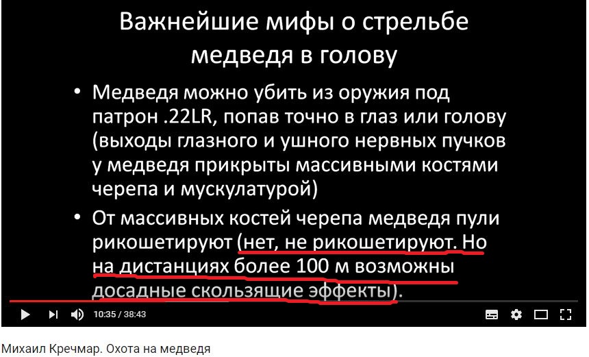 Между тем, лично Вы, Игорь, приводили в качестве примера видеоролики, в которых медведя с близкого расстояния стреляли в голову, а после попадания пули в сердце, медведь убежал. Как эти видеоролики опровергают рекомендации Лялина, Мельницкого, Ширинского-Шихматова и М. Кречмара?