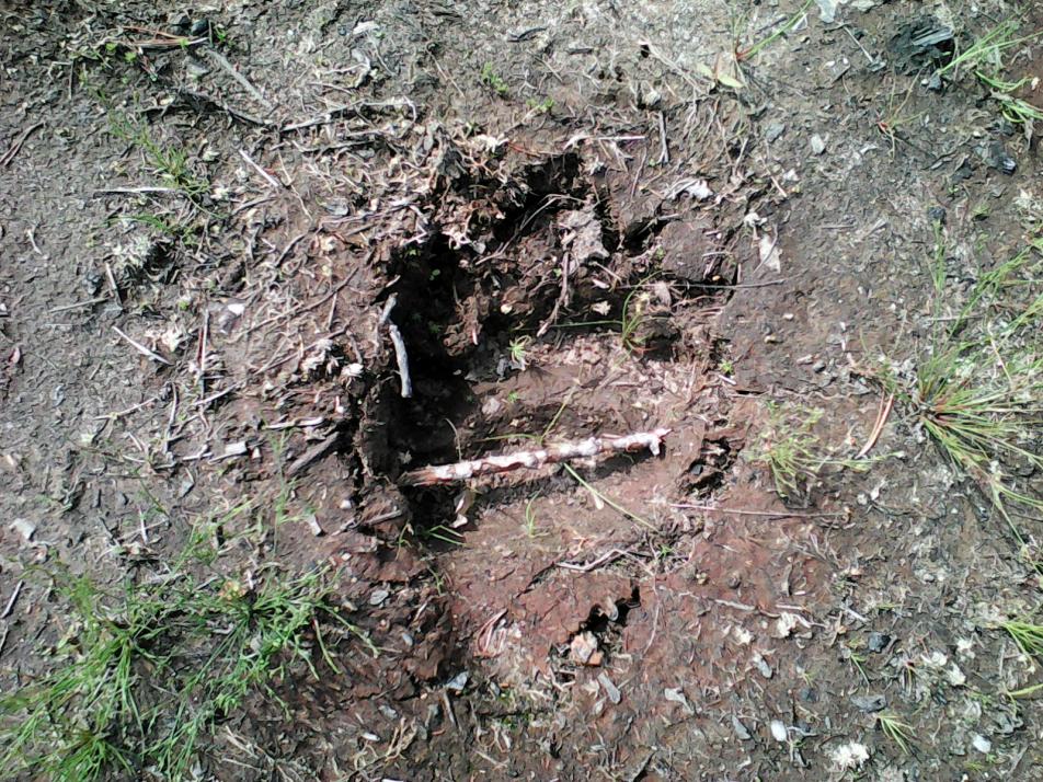 Сегодня наткнулся на относительно свежие следы медведицы с медвежонком. Кировский район. До деревни ровно километр. Полно грибников и ягодников. Дома померил длину палочки-14 см. IMG_20150726_153042.jpgIMG_20150726_153019.jpg