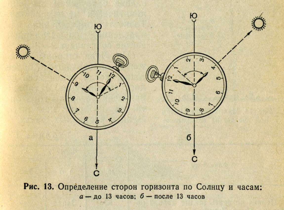 в ясную погоду может пригодиться ориентирование по часам: