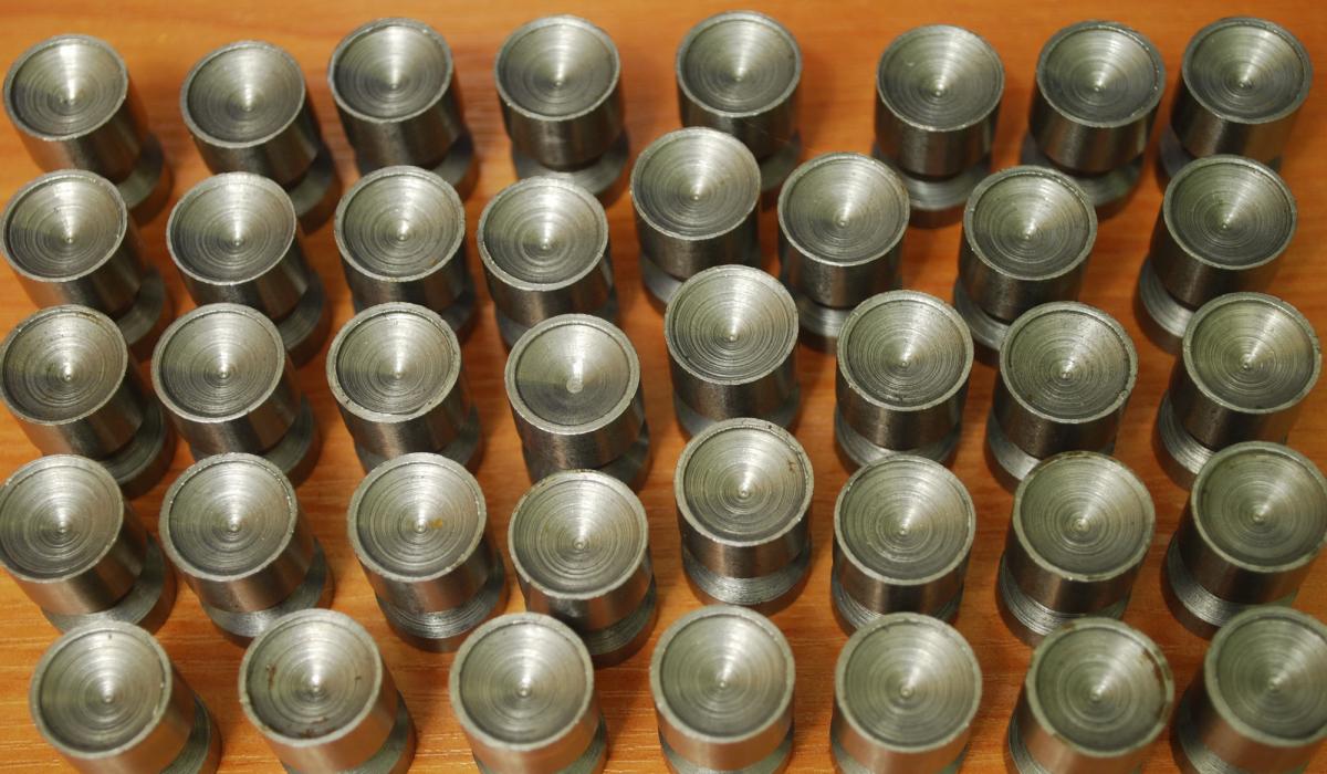 ), обратите внимание на пулю в середине, это как раз одна из немногих (таких штук 25 на всю партию) нормальных пуль, вот такая огромная разница меня и возмутила, они все РАЗНЫЕ! (разная ширина бортика - от 0,2 мм до 2 мм., разностенность, несоосность, некоторые вообще не имеют бортика - воронка идет сразу от внешнего диаметра, разная ширина проточки под замок обкладок, заусенцы и вырывы металла). Другое фото - это то что висит на сайте Иванова в теме продаж. Как говорится - почувствуйте разницу
