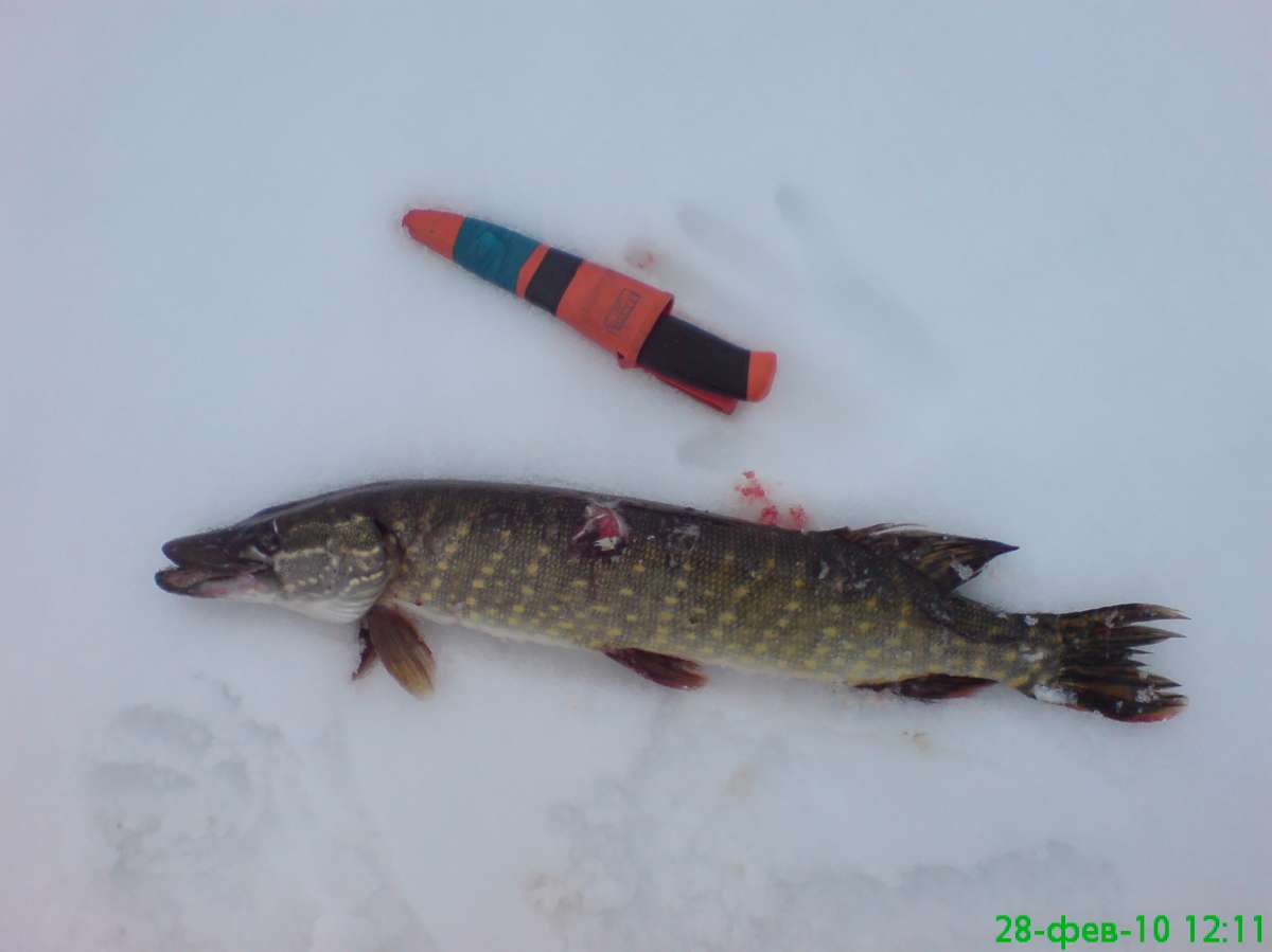 На "глубине" нету ничего окунезубастого , плавно перебрался с 10 на 6 метров , вот там то всё и началось. Началось всё банально, окунь ещё окунь опять окунь, не крупный, но стабильно и тут удар, бац ... нет блесны ... , а чиорт думаю , запасных то нету , тащу леску , не идёт ... ! И тут я понимаю , как я влип ))) в принципе боролся не долго , наверно быстро пролетело время пока изматывал противника, сразу было ясно, что не судак. Щучка!!!! конечно бывает и побольше, но это первая моя зимняя щучка! Дальше уже мне было даже не заметно, как идёт этот противный дождь!