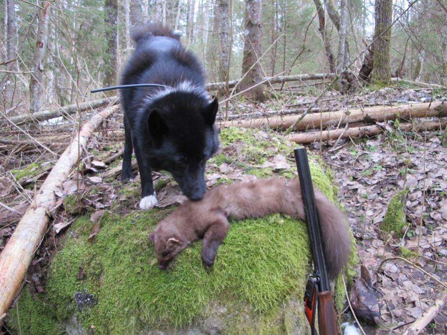 Закрыли сезон . В последний день , можно сказать в последний час , сука яркой отработала по крупному коту . Итог сезона четыре куницы , с учетом времени на рождение и воспитание потомства совсем неплохой результат .
