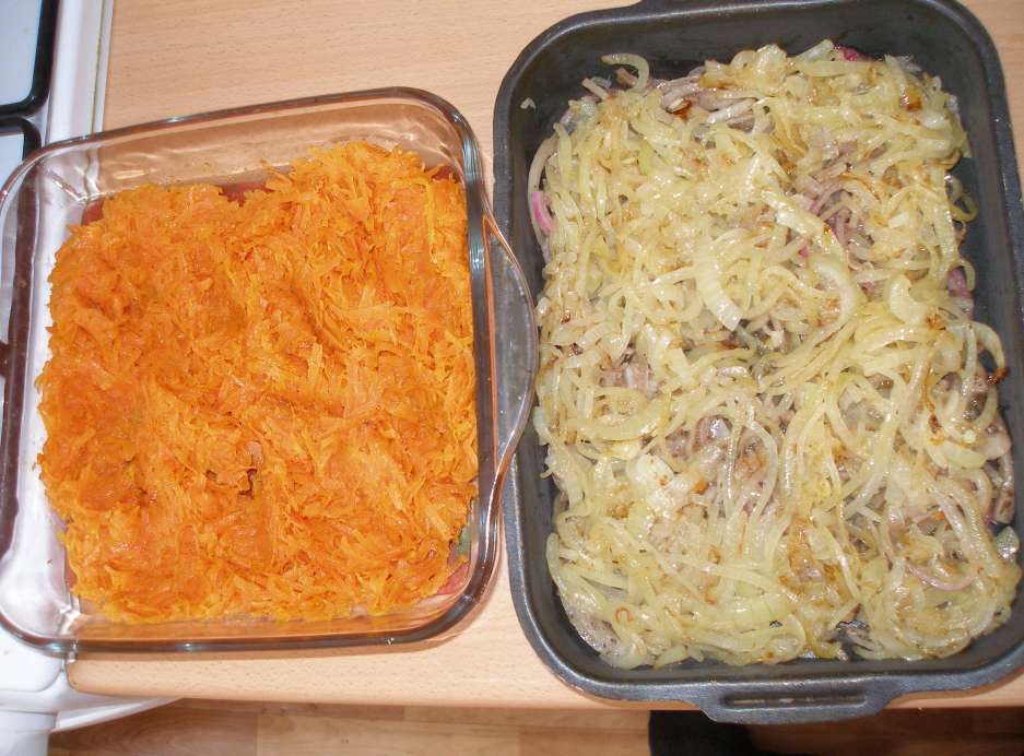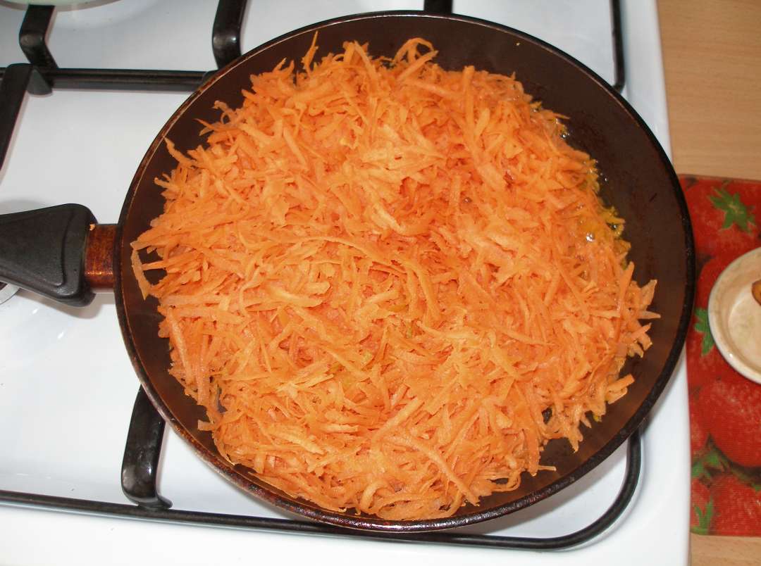 Так же поступаем с морковкой(только не режем кольцами , а на терке)
