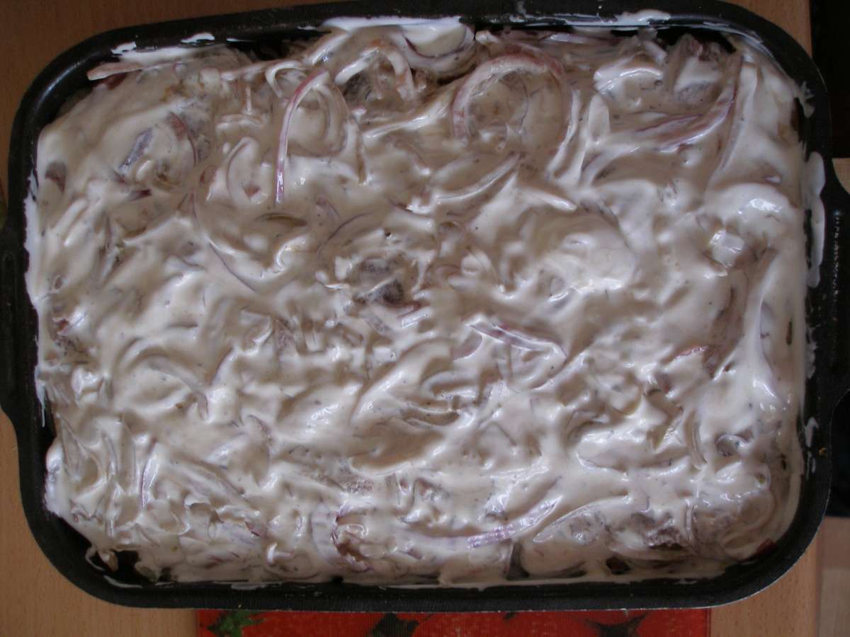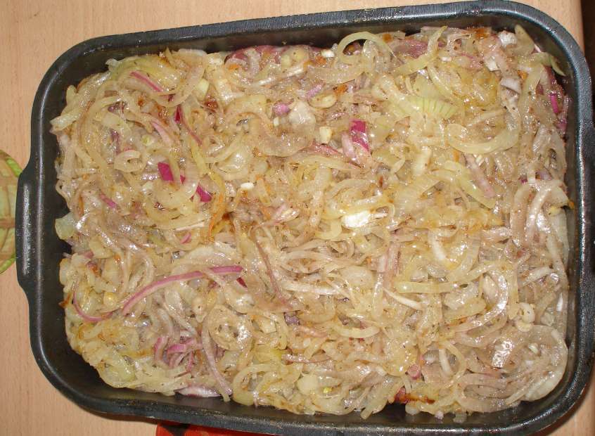 И укрываем всё лучком сверху.
