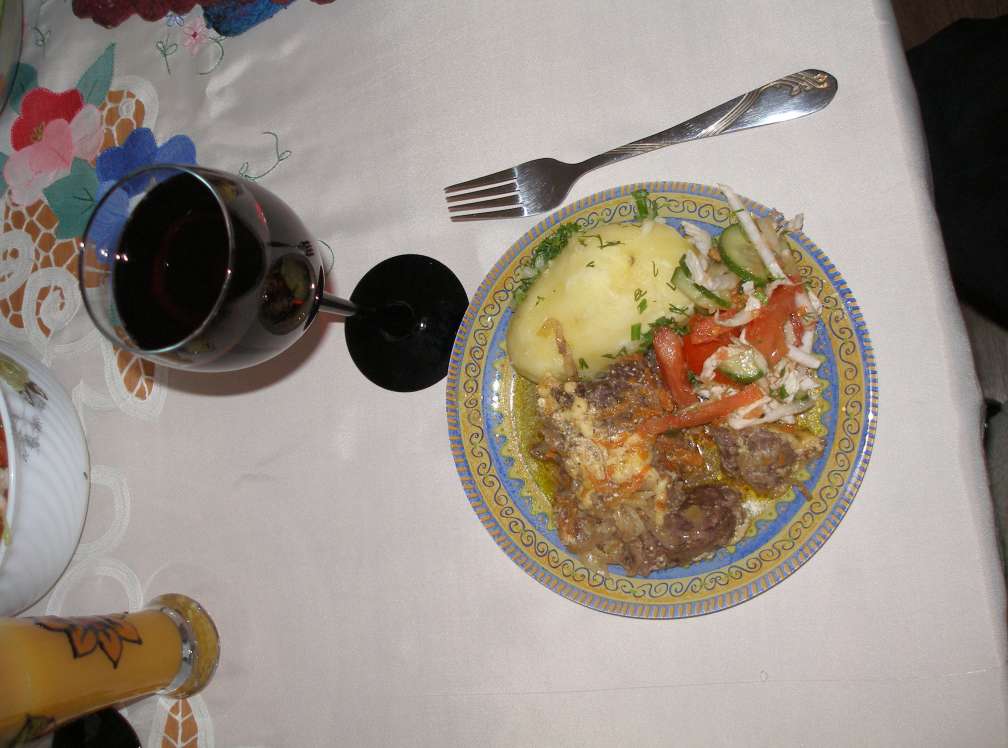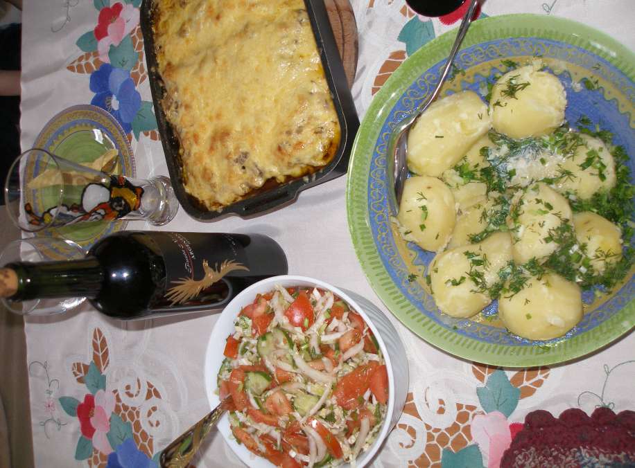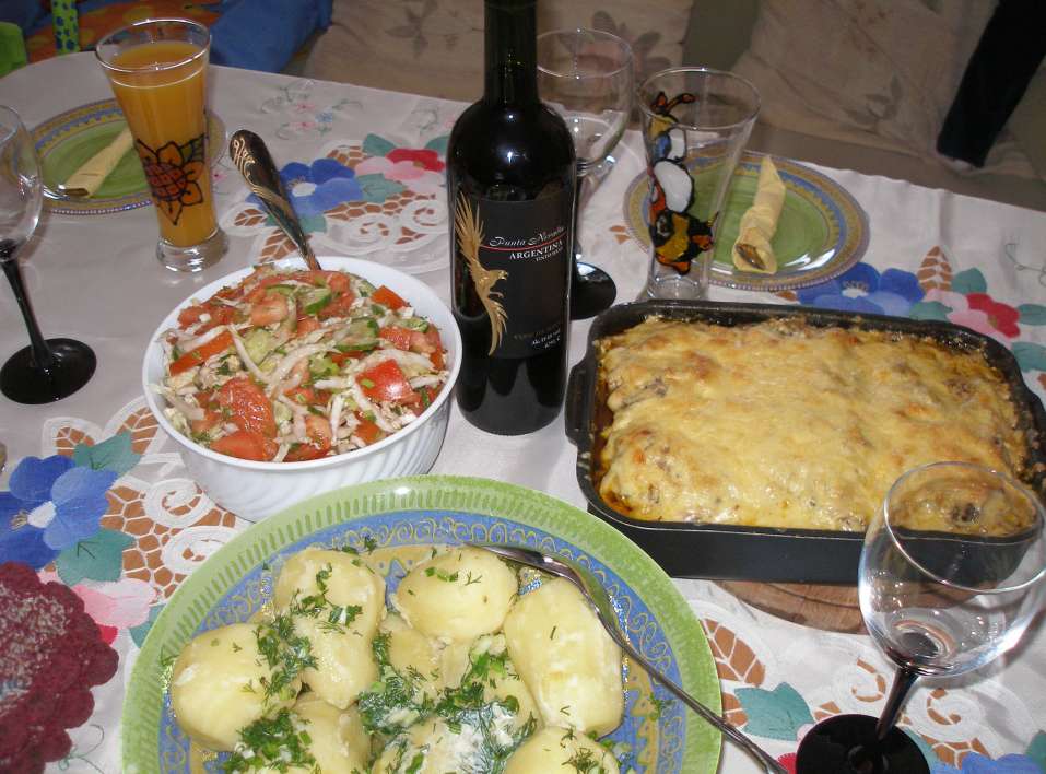 Пятый этап считался окончательным, перед тем как передать готовый продукт страждущим, напряженно ожидающим у стола и нехотя потягивающим красинькое винцо за непринужденным разговором. (кстати процесс приготовления не исключает приём спиртного внутрь для усиление творческого мышления)