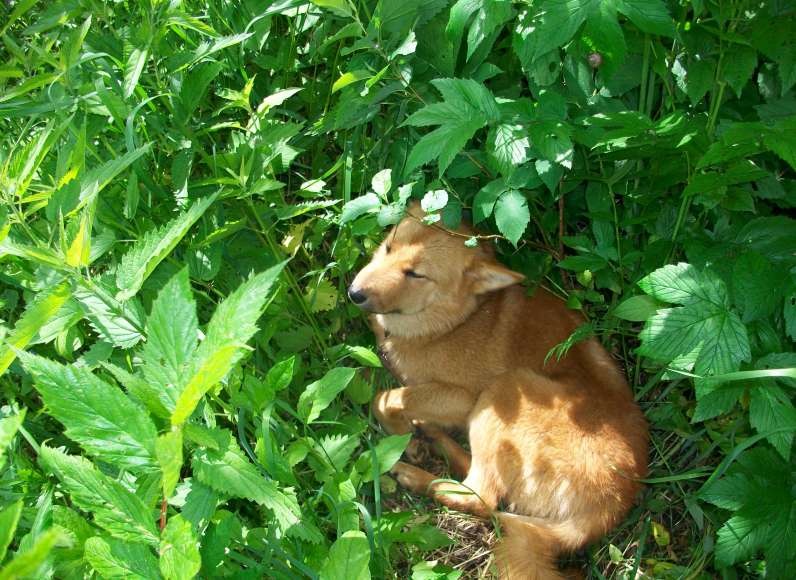 Шли в Карелии по лесной песчаной дороге, и день был солнечный, такой последний августовский, припекало маленько. И по поверьям местным, якобы в этот день змеи все выползают из укрытий и в клубки вьются. Ну в приметы я не верю особо, но сколько раз в этих числах действительно змей видела в тех краях в каком-то повышенном изобилии скажем. Впрочем отвелклась. Значит идем, сзади неспешно бежит моя карелка, пожилая дама, 13-летняя тогда еще, бежит и по причине возраста, вокруг себя особо не чует и не смотрит. Вдруг я боковым каким-то, зрением, чуть сзади, засекаю греющуюся гадючку. Успеваю только привлечь внимание своих попутчиков. И в это же время(!), уже все хором наблюдаем, не успевая ничего предпринять, как наша собачка пешком переходит греющуюся змею, не замечая её, но перешагивая и задевая её одной лапой