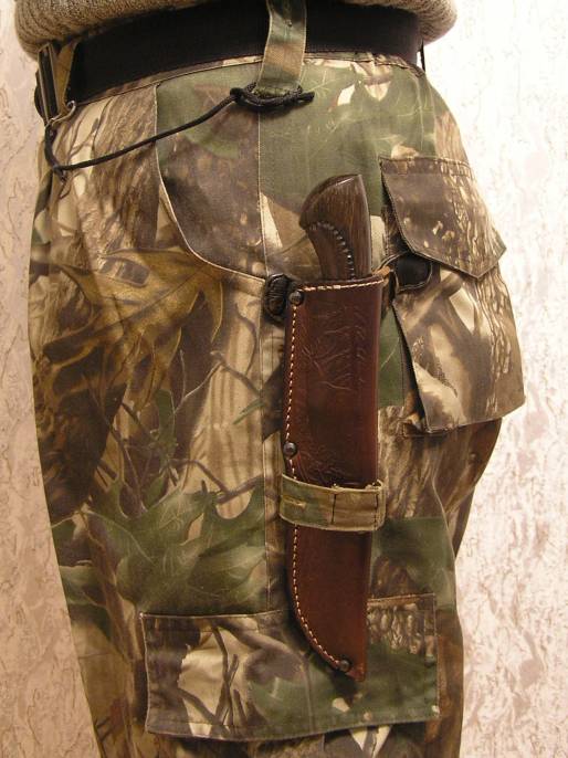 Эта тема возникла в" дискуссии о ножах".Предлагаю продолжить.Я нож ношу на левом бедре уже лет двадцать,может чуть больше.Не сам придумал-где узнал, картинки прилагаю.Только модернизировал немного(фото) крепеж-к штанам пришиваю кожаный ремешок сантимов 7-10 с пряжкой и чуть ниже еще один-без пряжки(этот можно не из кожи).Нож всегда под рукой,нигде не мешает,быстро отстегивается-если нужно. Может кто своим способом поделится?