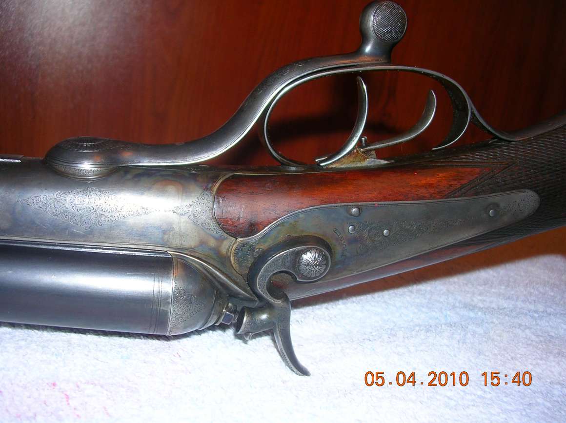 Скорее всего всё-таки Ланкастер.Вот: http://www.sportguns.ru/content/articles/guns_text/zatvor-perelomok-4/ .По цене не скажу,ружьё,видимо,редкое.Сохран,вроде,не плохой.Цветная калка не стёрта,дерево в норме(правда фото не очень качественные).Неизвестно,что в стволах,есть ли шат и т.д.Всё это влияет на цену.