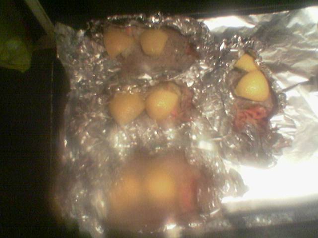 В преддверии открытия весенней охоты, освобождаю холодильник от старых запасов дичи, нашлись четыре утки. Дольше все делаю в кухонной раковине. Размораживаю тушки. Мою в проточной воде, даю стечь воде. Соком с половинки лимона мариную каждую тушку. Пока маринуется, нарезаю лук и морковь. Посыпаю уток солью, специями, натираю майонезом. Поджигаю духовку, чтобы прогрелась. На противень с духовки стелю слой фольги, чтобы не приставала фольга с утками к противню, и еще четыре слоя по количеству тушек. Стелю постель с лука и моркови сверху утку на спину, фарширую этим же составом. Заворачиваю фольгу, оставляю открытым грудку. И так всех уток. Загоняю этот табунок в духовку. Через 40-45 минут поливаю водным раствором с майонезом открытые грудки примерно 1-2 ст. ложки каждые 20 минут, до полутора часов готовки. Все, можно трескать