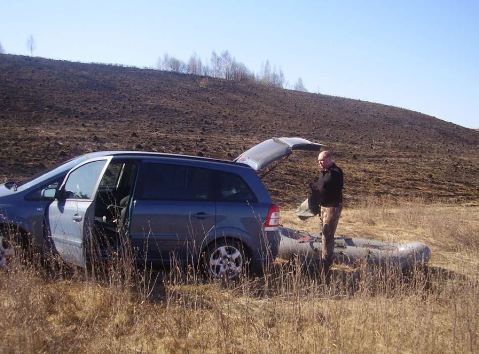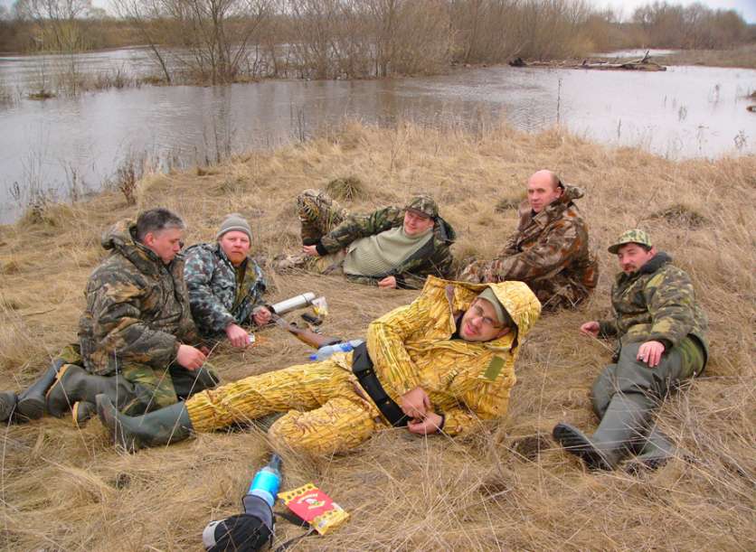 Утренняя зорька, удалась у Паши, им было добыто два селезня….но оба оказались именно той, непонятной мелкой породы (подсадная на их фоне, была просто гигантом…видимо это так сильно и влекло «маленьких мужчинок», к ней). Поскольку на этой охоте я был с Муркой, а не с привычным ТОЗиком…получился курьезный случай. С непривычки, не загнал в патронник патрон….поэтому, кряковой селезень, отделался только легким испугом. Поиски вчерашнего подранка, закончились Пашиным купанием…. открыл все таки купальный сезон (забродни были только у меня, Паша передвигался в болотниках….но их высоты не хватило). Еле выбравшись на дорогу (ездить после утреннего дождя, да по подтопленным дорожкам на легковом автомобиле, занятие почти экстремальное), отправились на базу…. Перекусив, стали обсуждать планы на вечер. Было решено, дать «отдохнуть болоту», что бы утиные успокоились, поэтому вечерку было решено пропустить. Точнее не пропустить, а переместить. Афанасич отвез нас на «Сергеевский пруд», такой нехилый скажу вам прудик, в него аж речка впадает. Но охота на этом месте, осложнялась трудностями дороги. Доехать, было нереально и на Ниве…..точнее доехать можно (благо с горочки), а вот обратный путь был маловероятен, что подтверждалось обилием свежих елочек, лежавших в колее и следов активного вытаскивания автомобиля (по следам определили, что вероятнее всего это УАЗ). А ведь большая вода, подразумевает обязательное наличие лодки, то есть все барахло, надо было тащить на себе до воды, а потом в потемках вытаскивать обратно…. В связи с этим, решили отказаться от охоты на пруду.