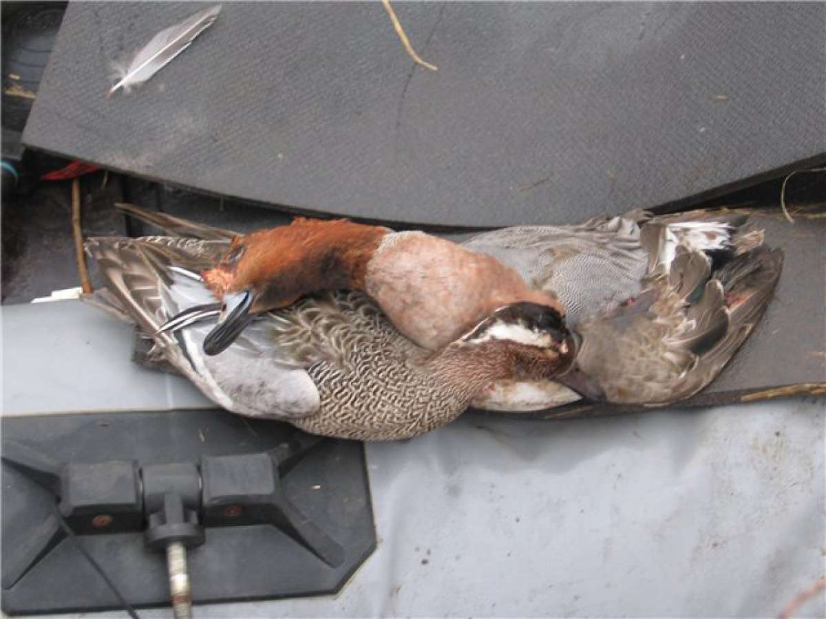 Вечерка, продолжила «мои потери»….поскольку я поленился строить шалаш, а рассчитывал на «лешего», селезни не подсаживались прямо к подсадной, а снижаясь к ней, сразу поднимались (надо было не лениться и строить нормальный шалаш). Поэтому, в первую вечерку, я потерял подраненного крякового селезня. Он упал на другую сторону протоки и скрылся в растительности. Поиски его не увенчались успехом и были отложены на завтрашнее утро (дабы искать по светлому). И как оказалось не зря, вернувшись к подсадной, я скоро взял первого селезня этой поездки. Поиски его, уже проходили в полной темноте…а когда нашли, оказалось что это непонятный «карлик». То, что это был селезень, не вызывало сомнений, но вот точно определить что это за вид утиных….не смог даже Афанасич. Его желание «посмотреть в умной книжке»… закончилось неудачно, в связи с отсутствием искомого каталога (видимо, зачитал до дыр).