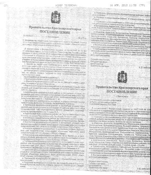 В Абанском, Ачинском, Балахтинском, Березовском, Бирилюсском, Боготольском, Большемуртинском, Большеулуйском, Дзержинском, Емельяновском, Иланском, Ирбейском, Канском, Козульском, Манском, Назаровском, Нижнеингашском, Партизанском, Рыбинском, Сухобузимском, Тасеевском, Тюхтетском, Ужурском, Шарыповском районах нельзя стрелять в птицу с 30 апреля по 9 мая 2010 года.
