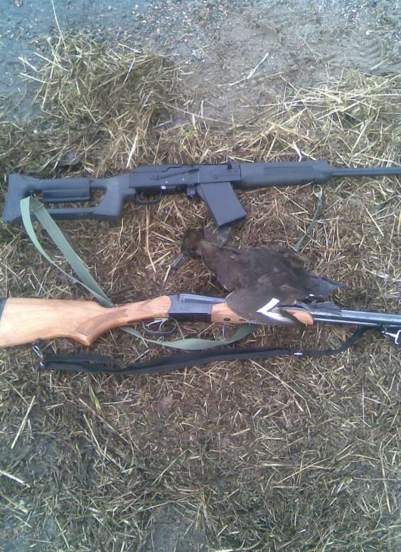 Один подкрался ко мне со спины и хрюкнул только над головой "нэ хороший птыц" за что получил по корме и был благополучно спущен с небес на землю. Второй летел чётко над дорогой и молча , то-же был бит, но по инерции шлёпнулся в огромную лужу метров 20 в диаметре . Ох и помучался я доставая его (сапоги-то маленькие по колено всего) .