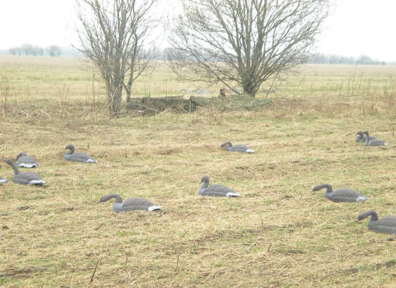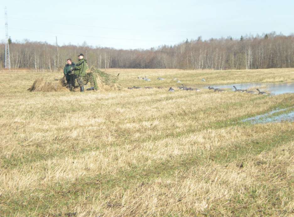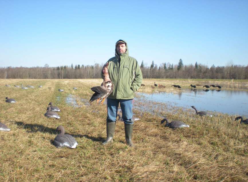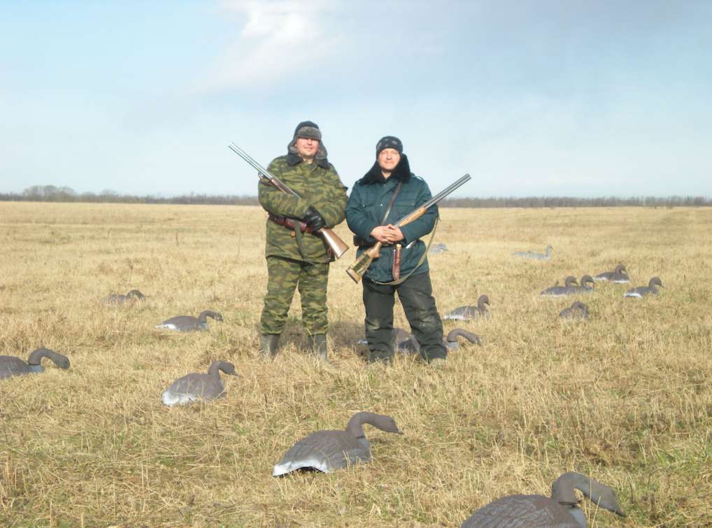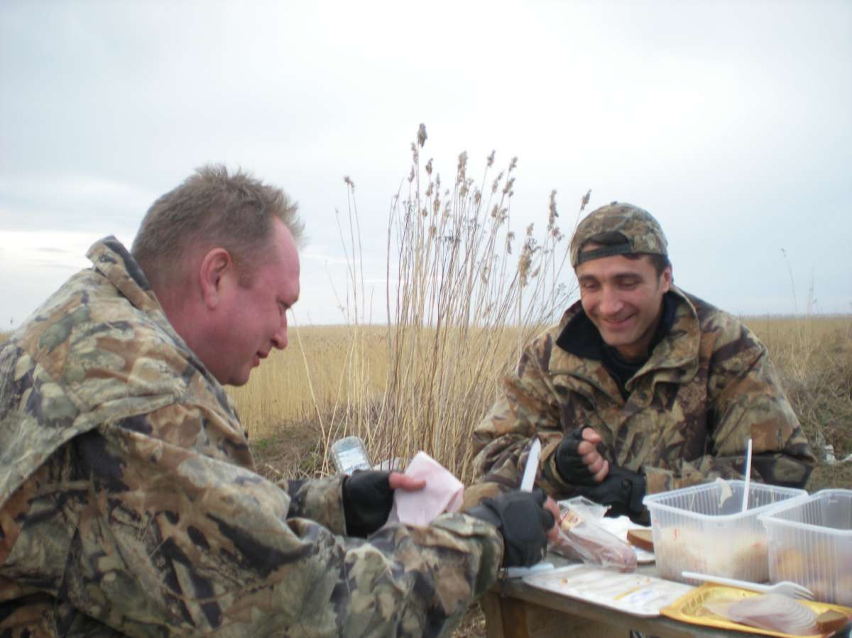 14 дней проведенные в полях, дали свои результаты. 16го числа вечером стали лагерем, сделали скрады, установили: макеты, профиля. Гусь летел но мало. Лужа на которой расположились была велеколепной. 17го раненько с утра налетели 4е разведчика, нарушив правило не стрелять разведку, дал команду " бьем", растояние было около 30м. Смазали! Через минут 15 сново налет из 4х штук, тупо шли на посадку, ростояние около 20м, команда "бьем", из 4х взяли одного. Ворошиловские стрелки, м...ь их так! Дальше, а так же и 18го охотились чисто на Сосандруса-Пипиндруса (есть такой большой, злой и хитрый зверюга). Из гуся получилась отличная, просто великолепная шурпа. Мотаясь по полям мы фактически не видели гусей. Такой охоты у меня еще никогда не было, охотились чисто на хитрого и злого хищьника. И вот закрытие! Глядя на фотки, попадаются знакомые лица, это лица с которыми я охотился. 30е с утра сидели в двоем, наманил стайку гусей из 30шт, растояние меньше 20м. Смазали! Больше налетов не было. Гусь летел не плохо, но далеко и над другими полями. Появился напиток "прополис". 01.05 с утра наманил одиночку, нас уже шесть человек, все стрелки высший класс. Команда "бьем", до гуся метров 15-18. Мимо! Гусь повертел крылом у виска, потом махнул на нас этим же крылом и улетел. "Прополис" делает свое пагубное дело. В двоем удалились от скрадов, по делу. Гуси 15шт нашли тупо на нас 10-12м бьем и ...??? Гуси показали feku! Чем очень оскорбили нас. Мимо кассы! 02.05 охота на сосандруса хитрого зверюгу продолжается. Гуси летали над другими полями, много. За весь сезон добыл: 2а валика и одного чирка. Из охотников ни кто не погиб, фамили и имена изменены в целях их безопасности и преследования насмешками.