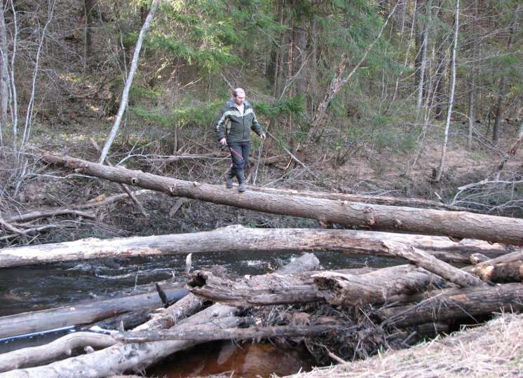 Традиционно закрылся на далекой лесной речушке в Лужском районе. Поскольку ребята из Питерханта в последнюю минуту от поездки отказались, позвонил своему старому товарищу по охотничьим странствиям Саше Богуславскому (именно с ним мы открыли для Клуба Огорелье), который охотно откликнулся на приглашение вместе с рыболовом Серегой. Добрались без приключений, форсировали речку и разбили лагерь на дальнем берегу прямо на вальдшнепиной поляне. Она не изменилась: все те же подрывы кабанов, катышки лосиного помета. Новость одна - полянка полюбилась Топтыгину, изрядно ее загадившему кучками с непереваренной клюквой