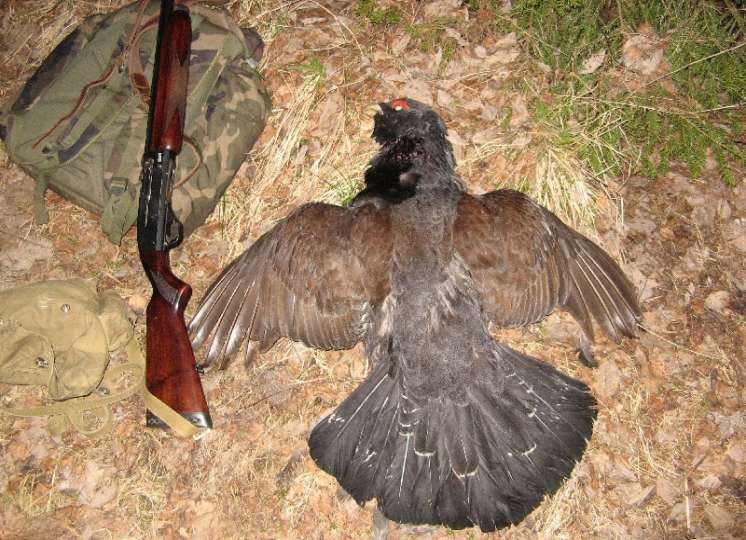 Следующий выезд был посвящен глухарю. Поехали на ток хорошего товарища. Вот тут охота выдалась хорошая. С погодой повезло, накрапывавший весь день дождик слегка утих к вечеру, я один отправился на подслух. Кто знает эти ощущения - тот поймет - я сидел на краю тока, покуривал... Ба-бах, хлоп-хлоп-хлоп... Сердце учащенно забилось - ну здравствуй родной, чуть позже прилетели еще четыре петуха... Поняв, что утро обещает быть удачным, я отправился в лагерь... ночевали как обычно в наскорую руку сооруженном балагане, практически под открытым небом... В 3 часа подъем, пьем кофе из термоса и бегом на ток, идем вдвоем, на току были к 4 часам. Остановились на краю гряды - отчетливо слышу как поют пять петухов - раз такое дело решаем, что стреляем одного... Три мошника просто работают как трио - расселись в виде треугольника и все одновременно - и сквиркают и точат!!! Красота! Выбираю ближнего и начинаю подход. Подошел метров на 35 - темно - в низу леса видно еще плохо!!! Чуть рассвело, вижу перед собой хорошую крону и замечаю в ней движение - но петуха не вижу - точит он практически без перемолчек - вываливаюсь на прогал - бах, под конец точения хрустнул веткой - мошник затих - стою - тело медленно затекает, оставшаяся где-то позади правая нога начинает нестерпимо ныть... тишина... цок,... цок, цок.... цок, цок, цок, чичивря-чичивря... снова затоковал, ну слава Богу, не подшумел... В итоге подошел я прямо напротив сосны, где токовал петух - встал и прислонился к сосне напротив - слился с ней - позади петуха разгорался рассвет - а он пел не прекращая, я смотрел на него, слушал и наслаждался минут двадцать, думал, как природа сотворила такое чудо, как я счастлив., что я это снова вижу и слышу, стрелять или не стрелять, ведь он же, мошник, погибнет за любовь... Кто знает, тот поймет... Хорошо рассвело - петух прямо напротив меня... Как учили, поднимаю ствол, кладу ему на шею мушку,... чичивря-чичивря-чичив.. Бах!!! - .... Тишина доли мгновений... Петух с треском падает к корням сосны, бьется в агонии и затихает быстро, выстрел выверенный, с такого расстояния в основание шеи, нельзя мучить мошника, он погиб за любовь, умер под песню... сажусь рядом, достаю сигарету, закуриваю, вытягиваю ноги и БЛАГОДАРЮ лес за то что он дал мне это счастье, наслаждаюсь моментом...