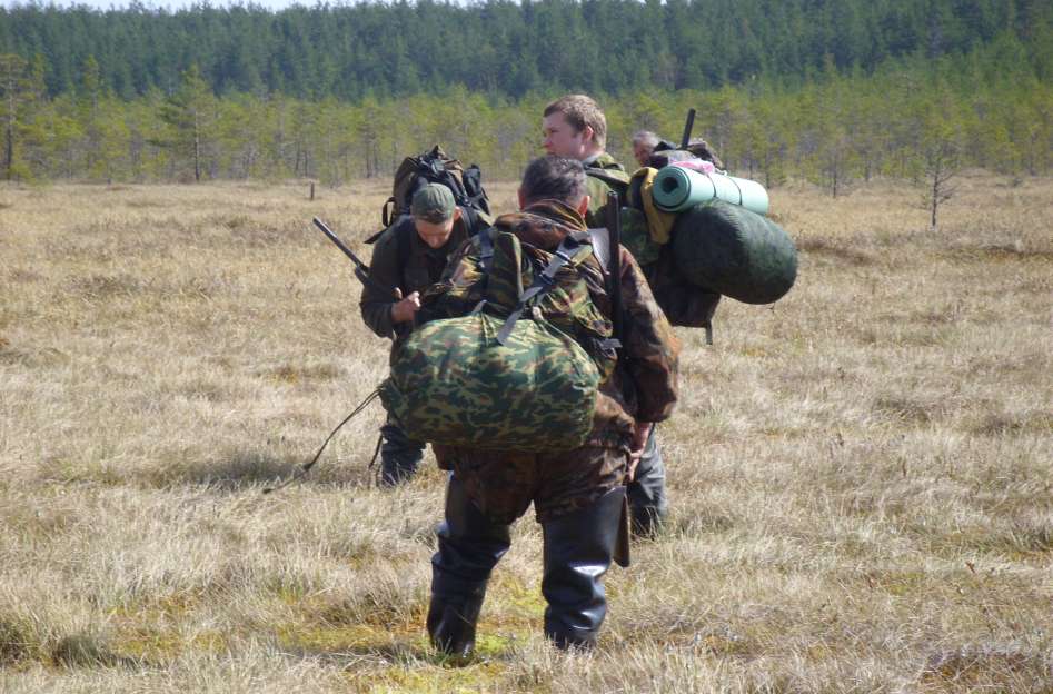 Третья вылазка на болото - на закрытие - пятница, суббота и воскресенье!!! Шли как пионеры - в незнакомое место, где по рассказам отцов есть древний глухариный ток - хотели разведать, да так на болоте закрыться, пообщаться, так как в принципе по гусю, глухарю, вале да косачу уже отстрелялись... Не рассчитали со временем - ночь и ливень застали нас на болоте - к долгожданной гриве на болоте выползали ночью на субботу под ливнем, кое-как распалили костер, наскоро сделали балаган - упали и уснули... Дождь шел всю ночь... Распогодилось только к обеду субботы... Привели в порядок балаган - теперь нам никакой шторм не страшен, заготовили сухих дров и отправились на разведку - каждый по своим целям - кто на гусиное озеро, кто по журавлям посмотреть, я же пошел на глухариный ток, я знал место где он только примерно, знал, что ток древний и знал про трагедию - несколько лет назад местный дурак выбил там поющих петухов бездумно... Искал долго - искал прежде всего по токовиному помету мошников - но помета не было... Как это и бывает - вечером случайно услышал как садятся глухари - сели два - но помета нет - странно - есть ток или нет... По пути к лагерю испытал обалденное удовольствие - сначала по рации корефаны начали зажигать в эфире шутками-прибаутками - было правда весело... На подходе к гриве среди болота, где был наш лагерь, так получилось, что я шел между двух лесных грив по болоту - впереди и сзади метров на 150-170 было чистое болото и сзади и спереди упирающееся в гривы, и тут потянул вальдшнеп, -его тяга была от острова леса к острову прямо через болото - я оказался как в тире - голое моховое болото, ник кустика - а надо мной носятся с цвиканьем и хорканьем вальты - удовольствие обалденное - первый раз так стрелял вальтов на открытом болоте - в итоге три вальта добыто... В 3 часа на предполагаемое место тока - но... тишина, облазил все, тишина.. странно, будем разбираться в следующем марте, по снегу...