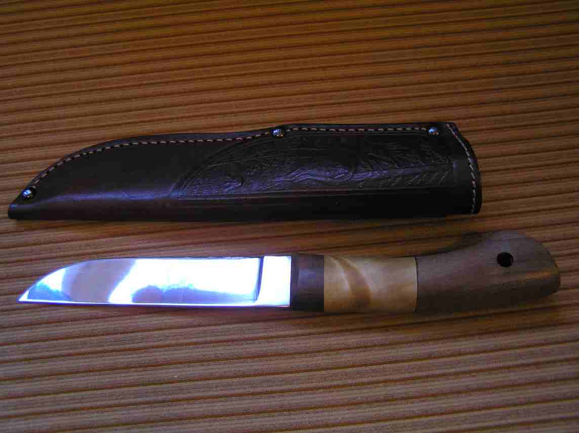 Теперь чаще нижний, заказной, клинок ШХ18, кованный.