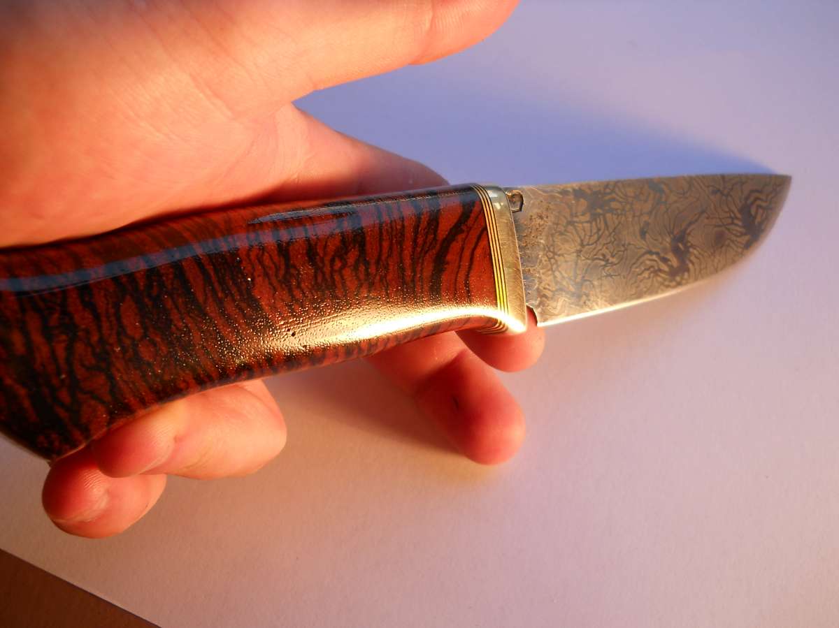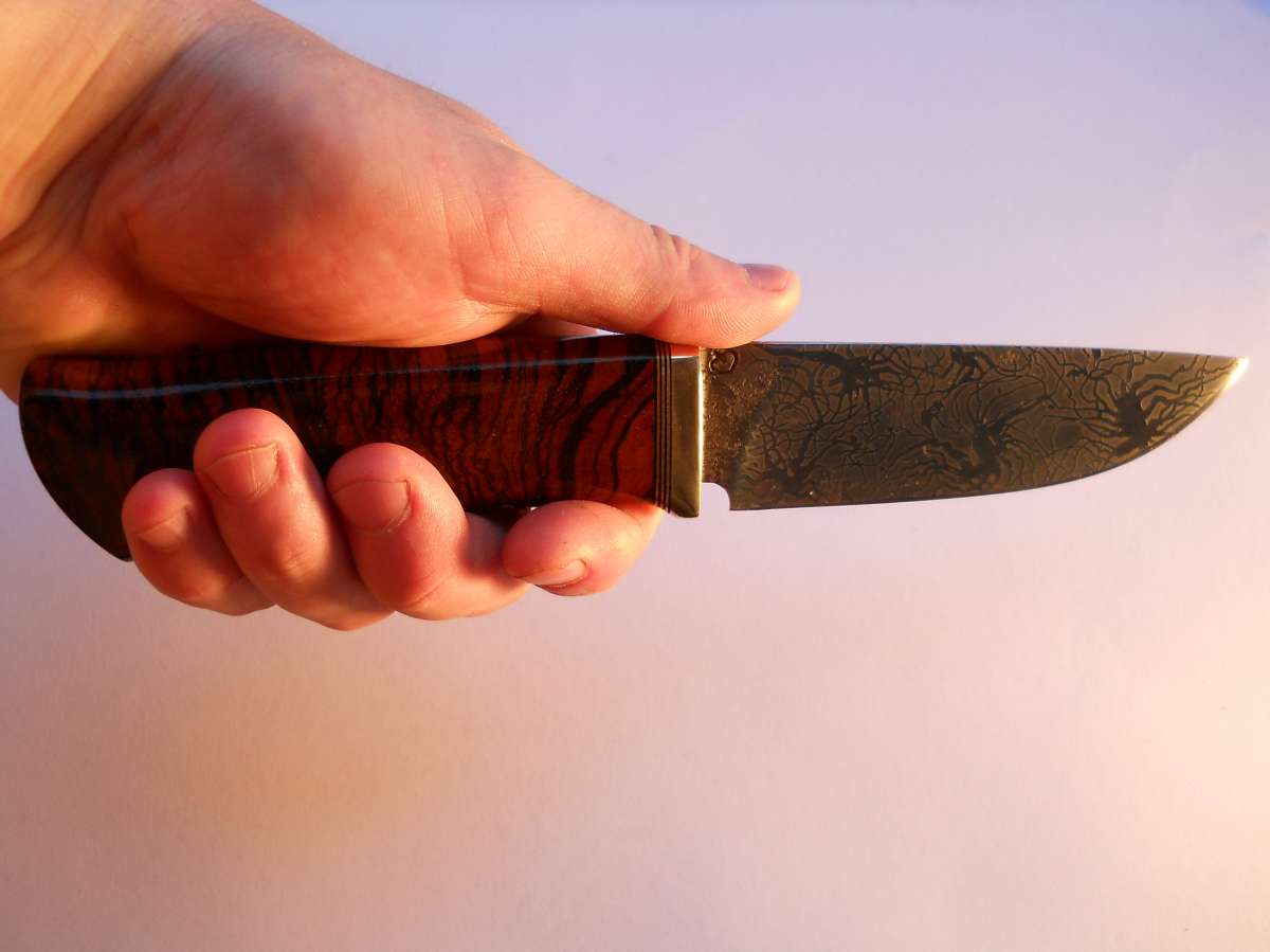 Братцы очередная поделка, зацените! Кованная У8А (62 ед), латунька, фибра, зебрано, кожа 5мм...и вот что из всего этого безобразия получилось: