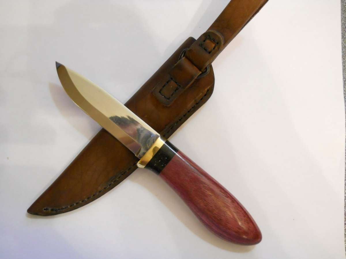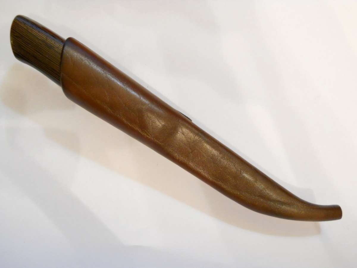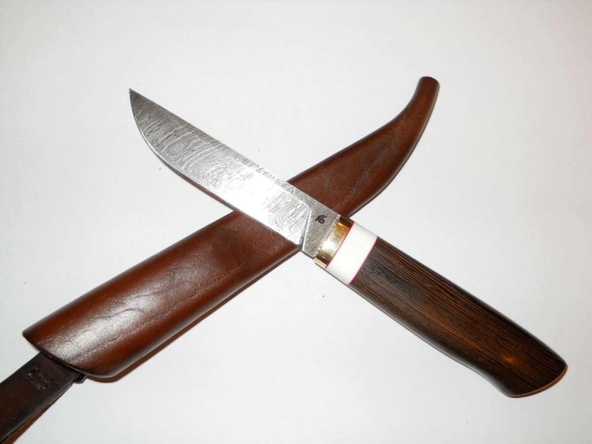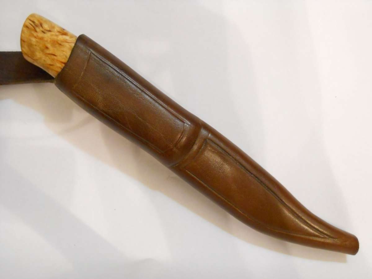 Ножны стандартные от меня, кожа 4 мм "фанерка", щас вот думаю как бы коже лоску придать, всяческие пропитки на маленьких кусочках пробую, в скором времени выложу с ножнами.