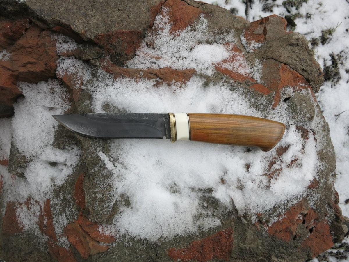 Живу. КБР г.Нальчик. Давно делаю ножи.Ножи для работы,чтоб он был надёжным,не подвёл в нужный момент.Мне раз пришлось в горах,на почти отвесной снежной стене, вонзая по очереди ножи,(я носил 2 ножа 12см и 16см, шир.25мм,сталь Х12Ф1) пройти почти 100м.Без ножей я бы там остался. На снимке один из тех двоих ножей.Он уже давно на пенсии. .Форму практически любую могу.