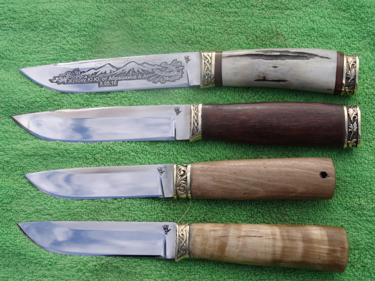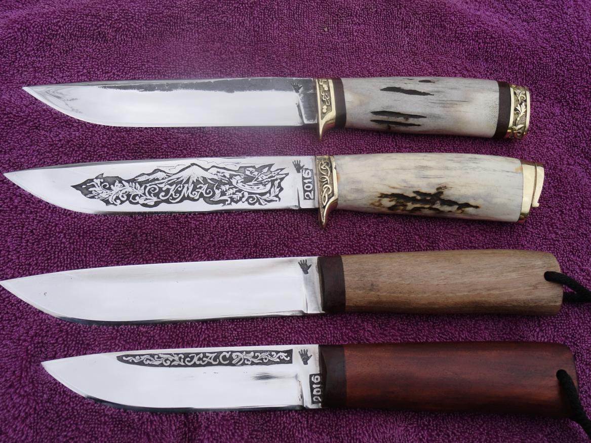 Живу. КБР г.Нальчик. Давно делаю ножи.Ножи для работы,чтоб он был надёжным,не подвёл в нужный момент.Мне раз пришлось в горах,на почти отвесной снежной стене, вонзая по очереди ножи,(я носил 2 ножа 12см и 16см, шир.25мм,сталь Х12Ф1) пройти почти 100м.Без ножей я бы там остался. На снимке один из тех двоих ножей.Он уже давно на пенсии. .Форму практически любую могу.