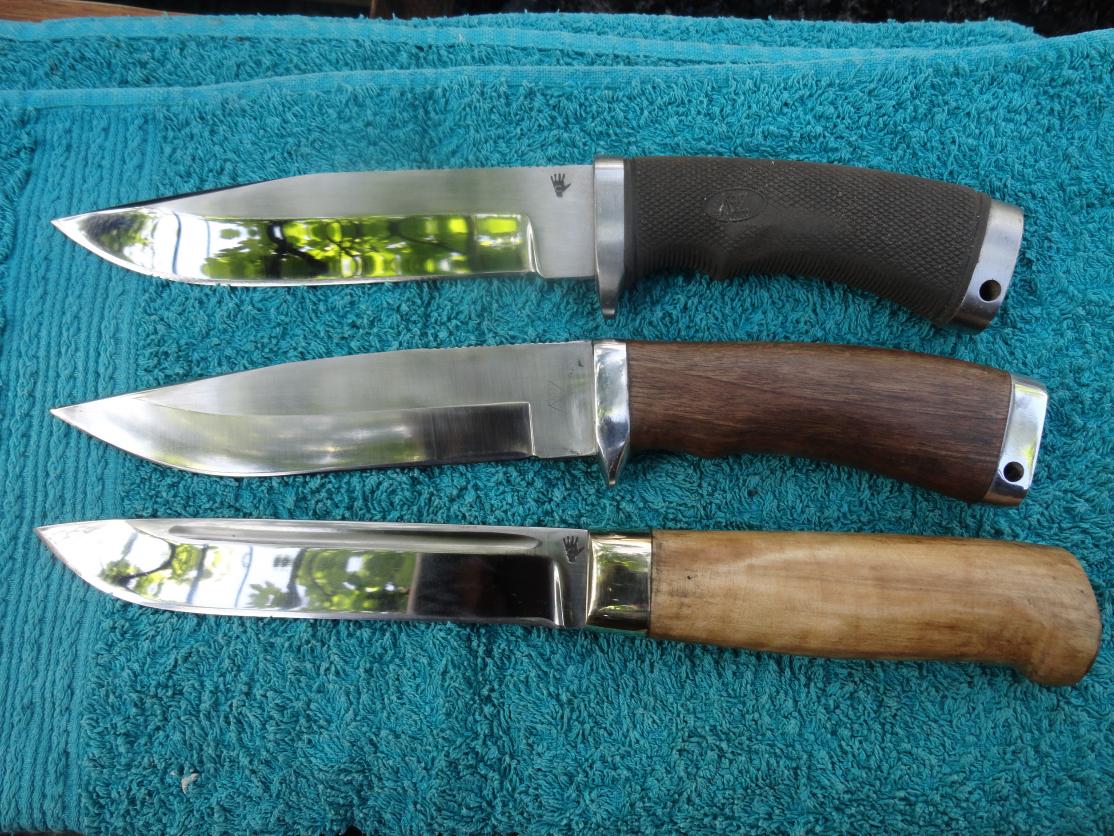 На втором снимке два верхних- новый клинок на поломанный KatZ и реставрированный,с деревянной ручкой.