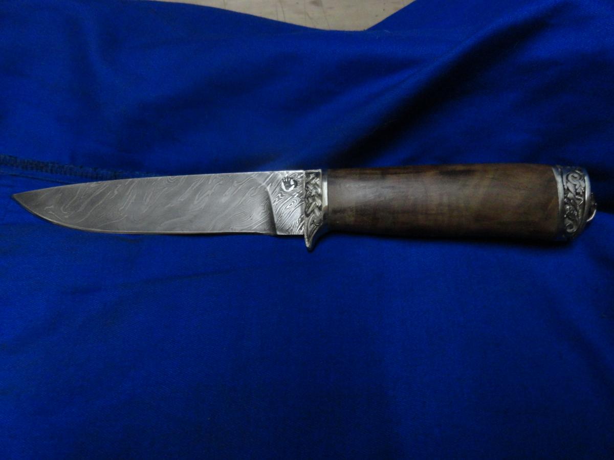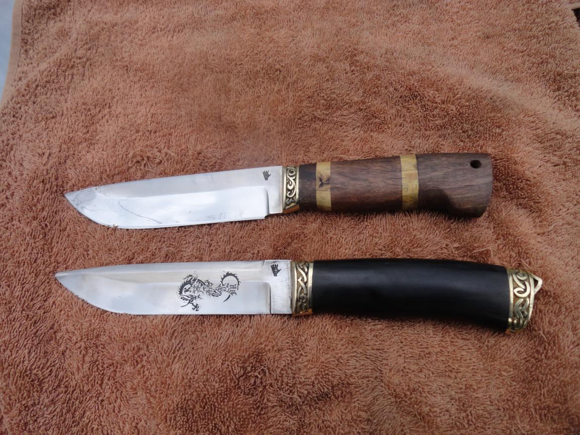 Живу. КБР г.Нальчик. Давно делаю ножи.Ножи для работы,чтоб он был надёжным,не подвёл в нужный момент.Мне раз пришлось в горах,на почти отвесной снежной стене, вонзая по очереди ножи,(я носил 2 ножа 12см и 16см, шир.25мм,сталь Х12Ф1) пройти почти 100м.Без ножей я бы там остался. На снимке один из тех двоих ножей.Он уже давно на пенсии. .Форму практически любую могу.
