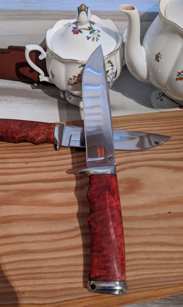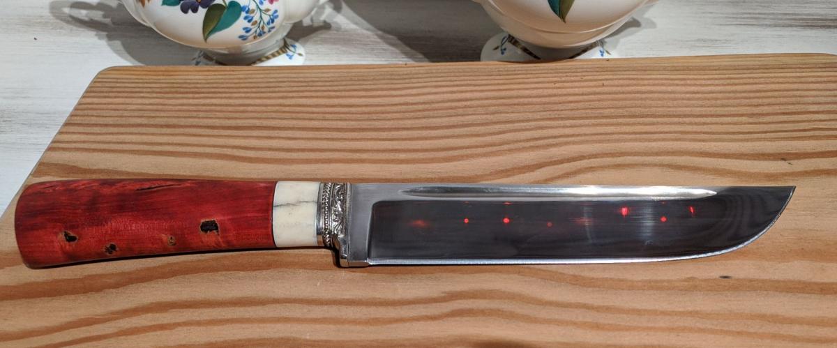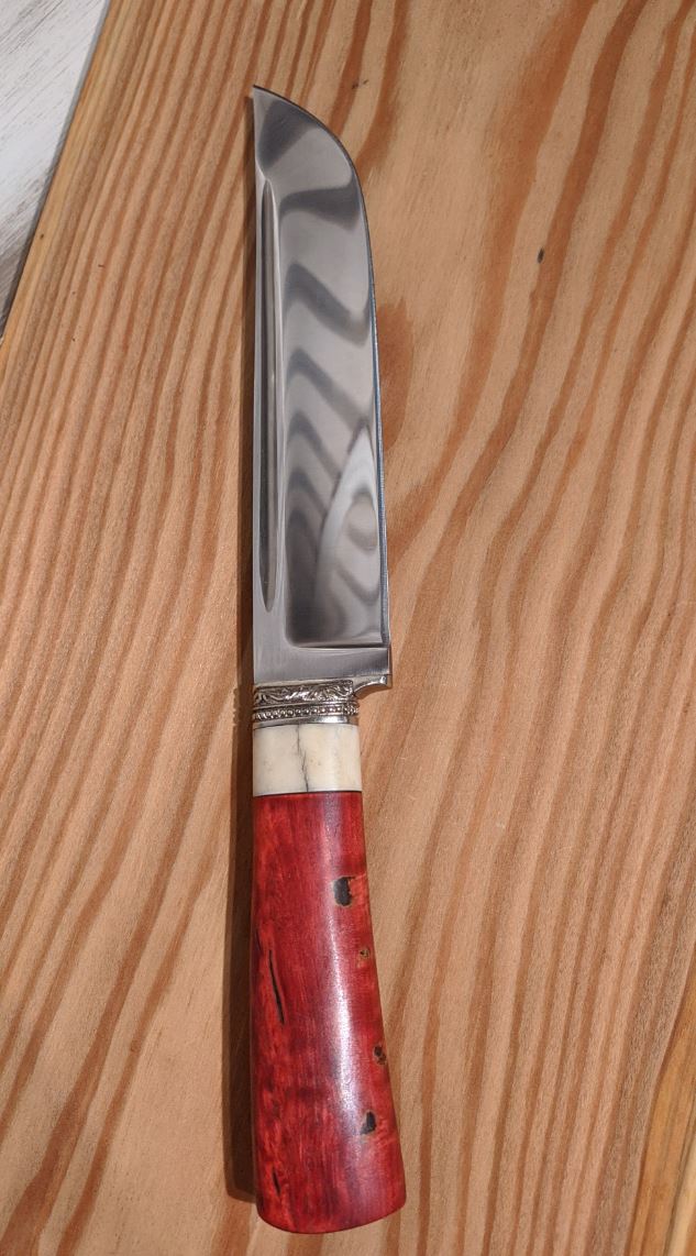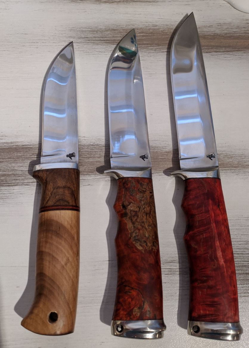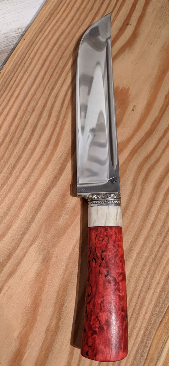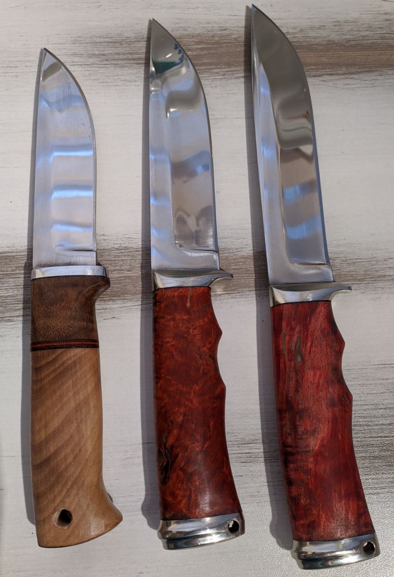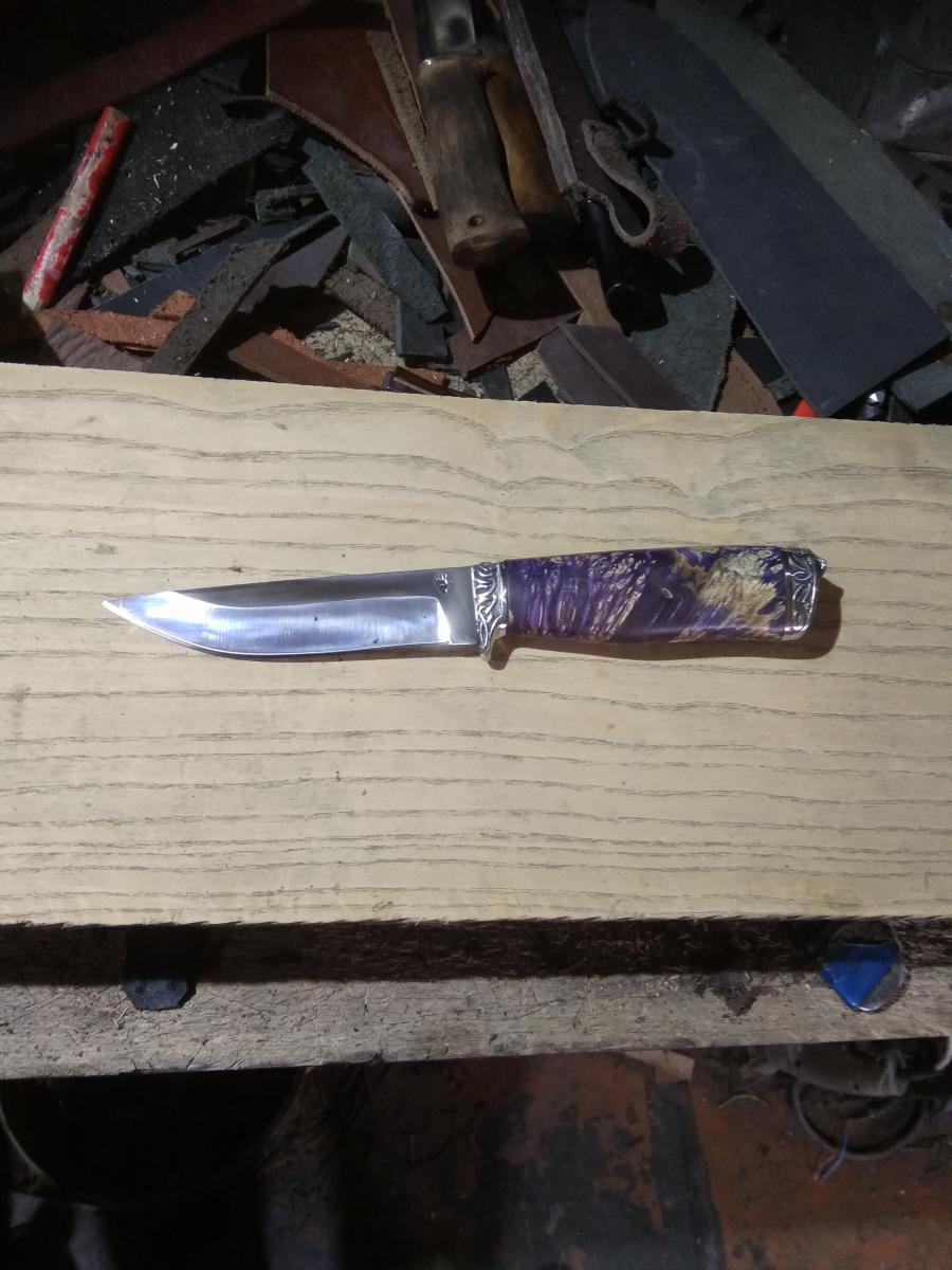 Живу. КБР г.Нальчик. Давно делаю ножи.Ножи для работы,чтоб он был надёжным,не подвёл в нужный момент.Мне раз пришлось в горах,на почти отвесной снежной стене, вонзая по очереди ножи,(я носил 2 ножа 12см и 16см, шир.25мм,сталь Х12Ф1) пройти почти 100м.Без ножей я бы там остался. На снимке один из тех двоих ножей.Он уже давно на пенсии. .Форму практически любую могу.