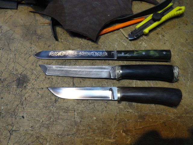 Живу. КБР г.Нальчик. Давно делаю ножи.Ножи для работы,чтоб он был надёжным,не подвёл в нужный момент.Мне раз пришлось в горах,на почти отвесной снежной стене, вонзая по очереди ножи,(я носил 2 ножа 12см и 16см, шир.25мм,сталь Х12Ф1) пройти почти 100м.Без ножей я бы там остался. На снимке один из тех двоих ножей.Он уже давно на пенсии. .Форму практически любую могу.