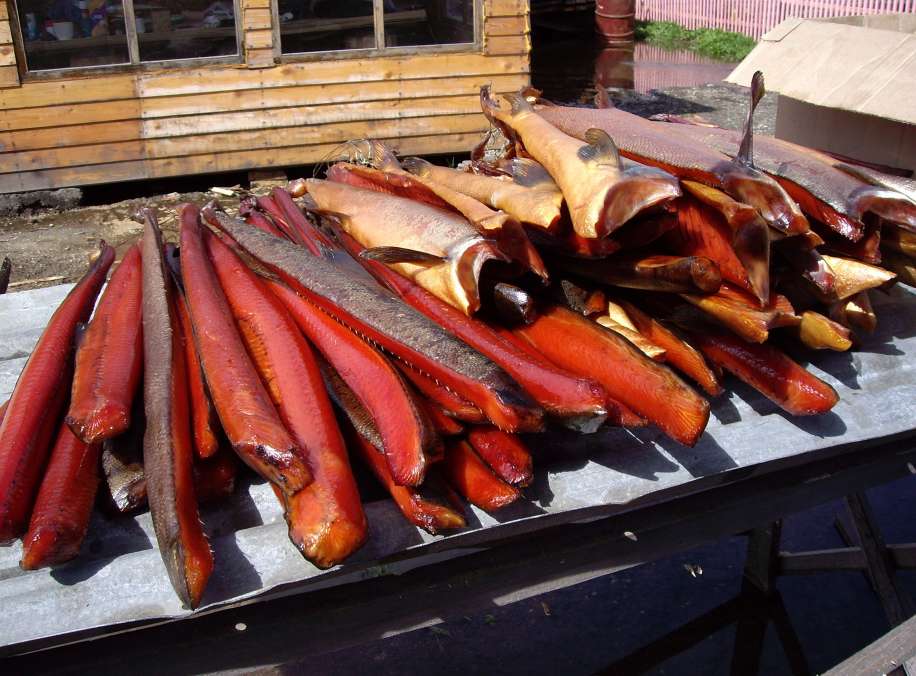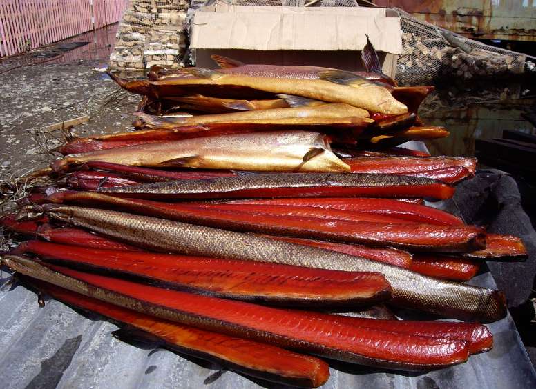 Подготовка рыбы к копчению: Рыба до 500 грамм разрезается по животу, с выше режут по спине на пласт либо по животу прорезая спину до шкуры или ещё лучше разрезать вдоль на две части, затем рыба заливается тузлуком и солится от нескольких часов до суток, иногда и больше, зависит от размера рыбы (тузлук: кипячённая вода разведённая с солью, до такого состояния, что бы сырая чищенная картошка плавала). После тузлука рыбу вывешивают подвялевать, вялят до полного высыхания рыбы снаружи, затем рыба вешается на крючки в коптилку и коптится 3-4 суток, регулярно следя за источником дыма.