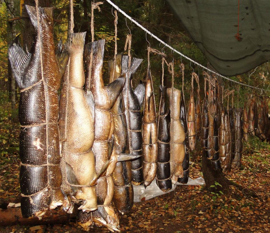На фото рыба подсушивается на ветерке еще пару тройку часов после копчения.
