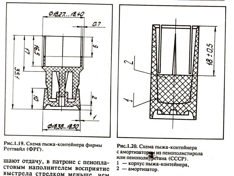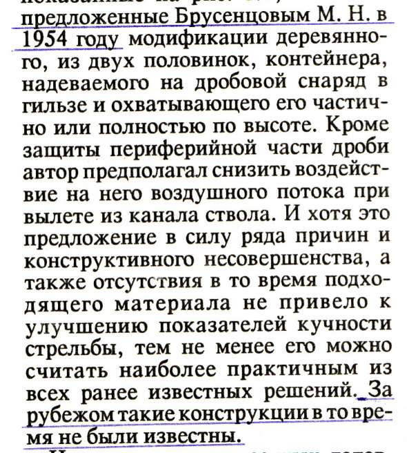 "...При выстреле такой пыж- контейнер несет в себе дробь на расстояние нескольких десятков метров без ее разлета...",