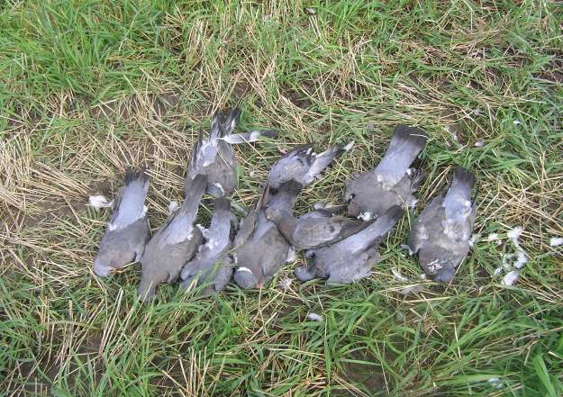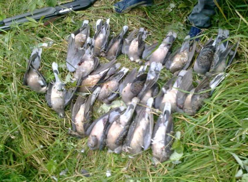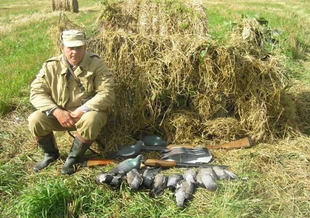 Правда чаще по одному, по два голубя, но бывает и группами штук в 6-7 налетают и пытаются подсесть. После промаха такие пируэты выделывает, что это лучше самому увидеть. Короче часикам так к 10 патронов в патронташах у нас почти не осталось, и решили заняться ощипыванием. Да и дома ждали неотложные дела. Птичка кстати очень вкусная, на ура идёт в вареном, тушёном и жаренном виде- рекомендую