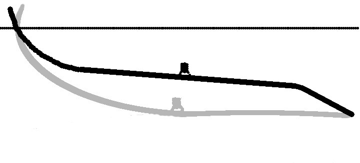 Однако это вовсе не скользящие лыжи, ИМХО. Какое нафиг скольжение с таким вот "бобровым хвостом"-задником? Он же гребёт, как якорь. Да и площадь их прикинь по сравнению с размером тётки (или с рубём на её плече)... особого скольжения я бы от них не ожидал. Это скорее здоровенные снегоступы. Поэтому обсуждать с Чайкой "выход из снега" на этом конкретном примере я ы не решился.