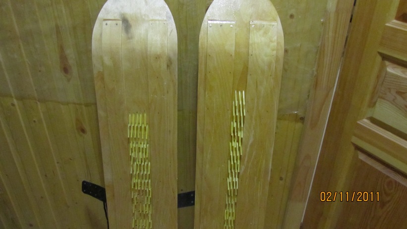 Чтобы понять конструкцию внутрь готовых лыж просто вложил четыре полозья. А на нос для прижима поставил канистру. А как это должно выглядеть на носу лыж?