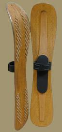 Вот такие лыжи мне показались интересными. Только вместо щетин, в углубление наклеил бы камус. В таких лыжах удобно было бы ходить по побережью. Там снег плотный и полноразмерные лыжи не нужны.