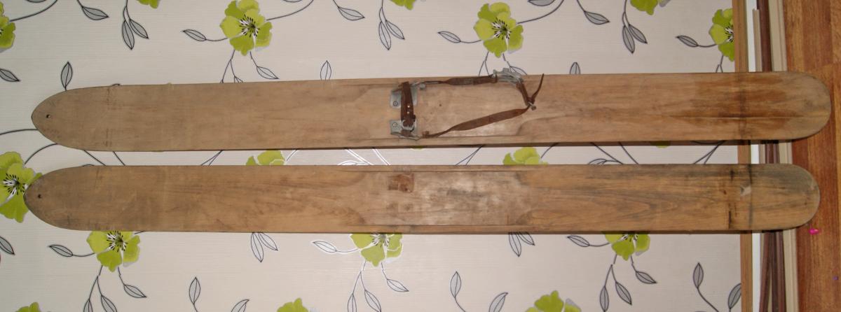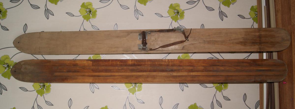 Вот фотографии и размеры лыж,сделанных моим дедом( а точнее бабушкиным братом).Лыжи у него лежали уже достаточно давно(лет 20 как минимум) и были подарены мне после очередного инфаркта-инсульта..Лыжи ,если не ошибаюсь сделаны из осины.Полностью вручную.Крепление от своих старых лыж,я поставил,чтоб не потерять комплектность со временем.